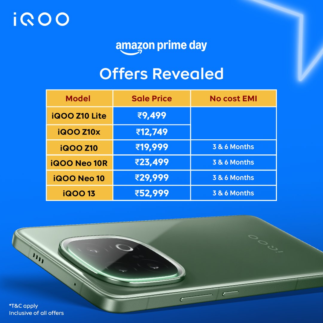 We have just dropped a game-changing post on X, teasing massive savings on their latest smartphones during Amazon Prime Day, set for July 12-14, 2025. From the flagship iQOO 13 to the mid- range Neo 10, these deals are to shake up India's competitive smartphone market. Let's dive in and explore what's on offer!