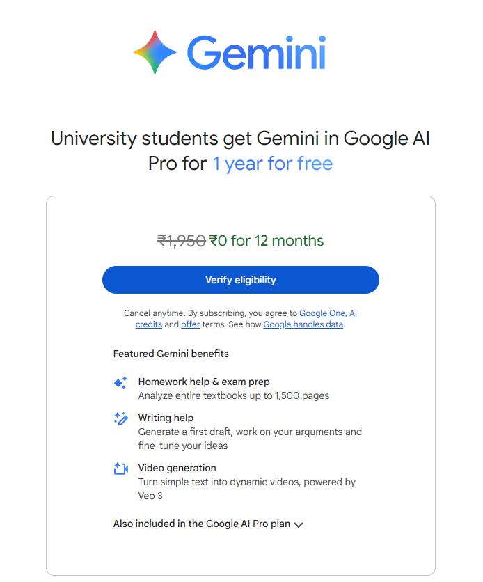 CLICK HERE:-College students get FREE Gemini upgrade for 1 year, worth ₹19,500