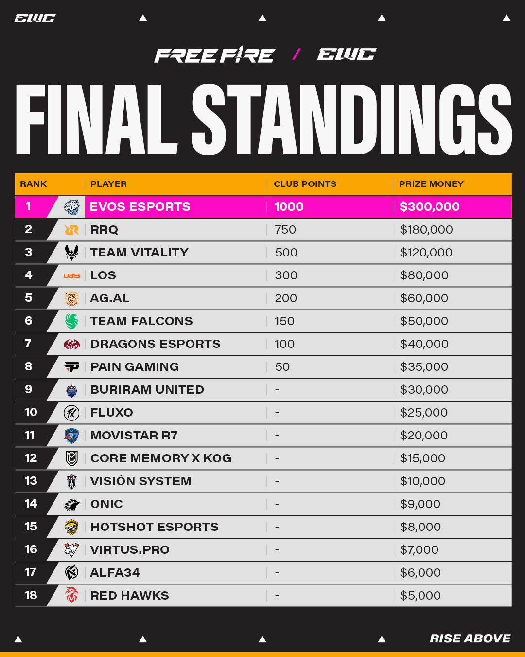 Throughout the tournament, EVOS Divine demonstrated an aggressive playstyle, accumulating an impressive 96 kills, accounting for over half of their 170 total points. Rasyah “Rasyah” Rasyid from EVOS Divine was recognized for his relentless aggression and outstanding performance, earning the Sony MVP award and an additional $10,000. While narrowly missing the championship, Team Vitality and Team Falcons earned special recognition for their strong performances, with Vitality’s third-place finish propelling them to the lead in the Club Championship, surpassing Gen.G.