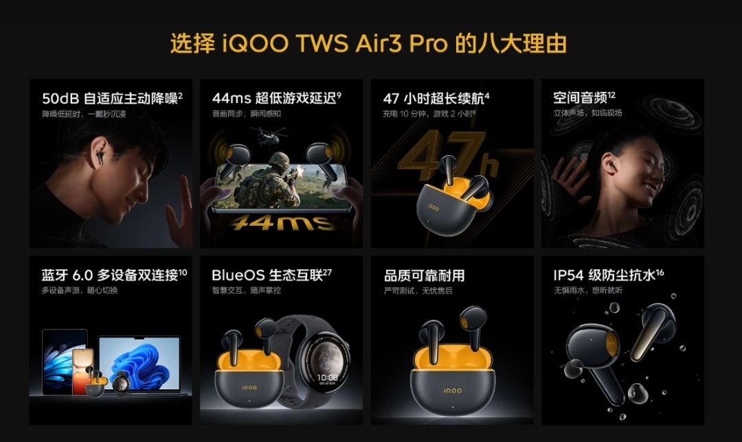 The iQOO TWS Air3 Pro is available in Star Yellow and Diamond White. It is priced at 199 yuan (around US$28) and available at a discounted 159 yuan (US$22) when purchased with the iQOO Z10 Turbo+.