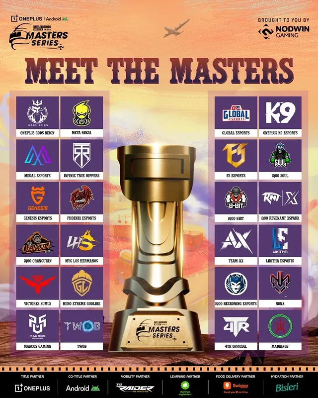 The wait is finally over! NODWIN Gaming and Star Sports are proud to announce that the BGMI Masters Series Season 4 is LIVE, kicking off today, August 18th, 2025! Get ready for an epic offline tournament where 28 of India's top BGMI teams will compete for the prestigious championship title and a massive prize pool of ₹1.5 Crores INR.