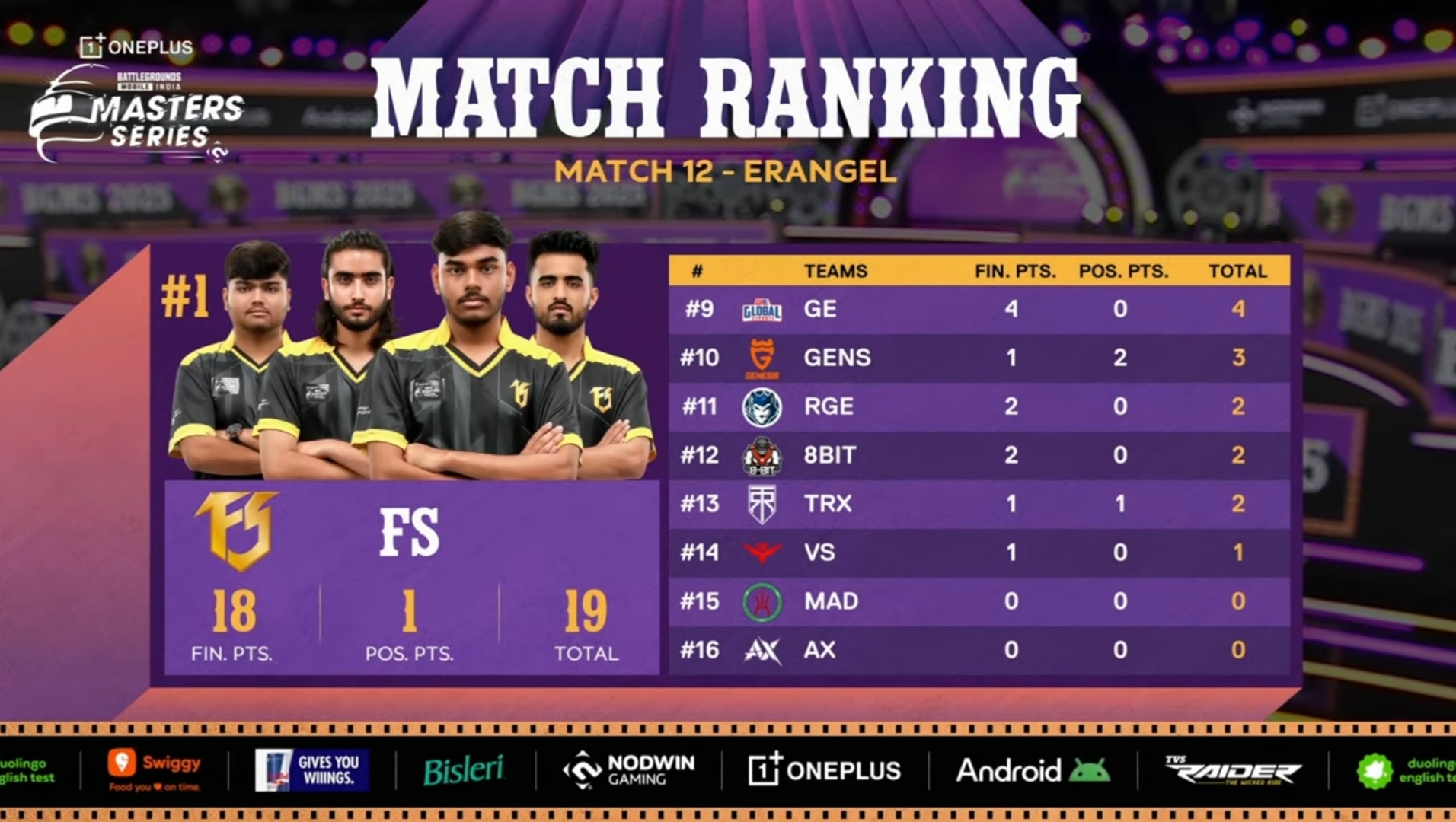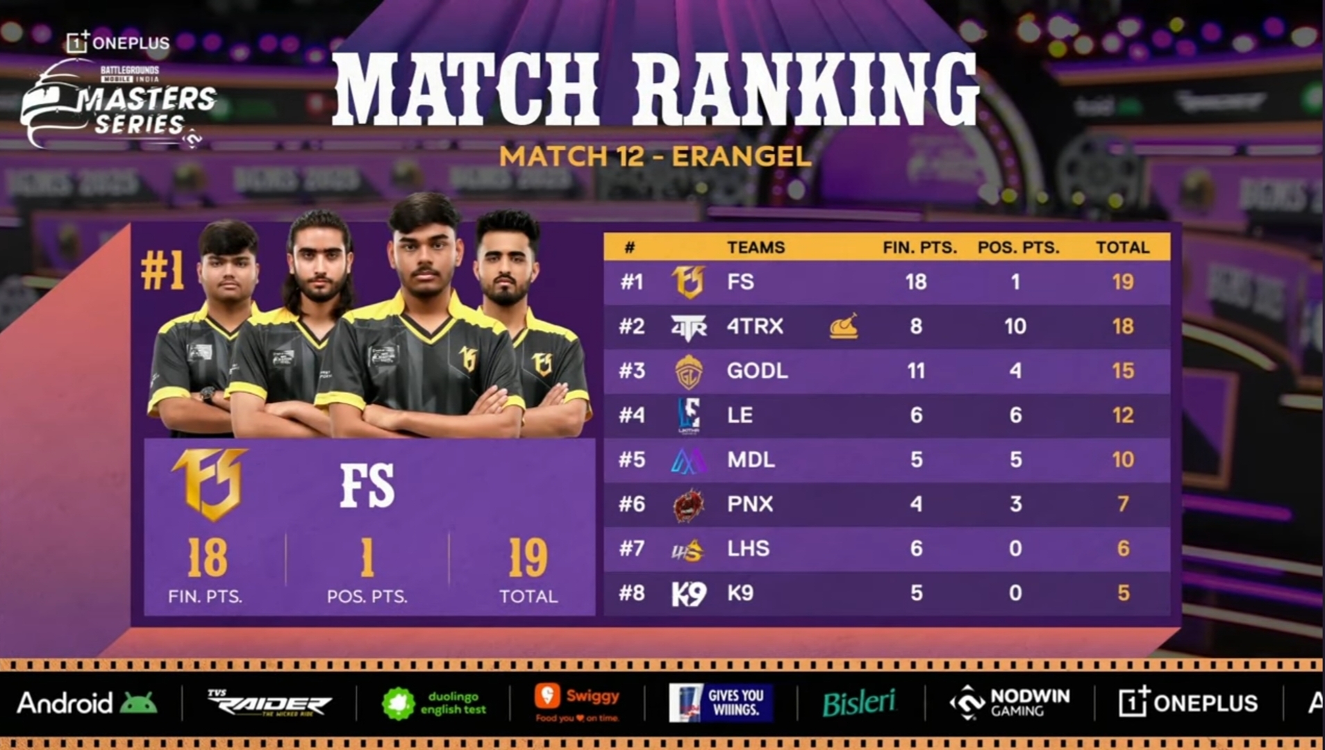 4TR Esports clinched the last encounter of the day with 18 points. FS Esports also did well and earned 18 points. GodLike and Likitha managed 15 and 12 points, respectively, while Medal Esports, which features BGMI star ScoutOp, scored 10 points in this match.