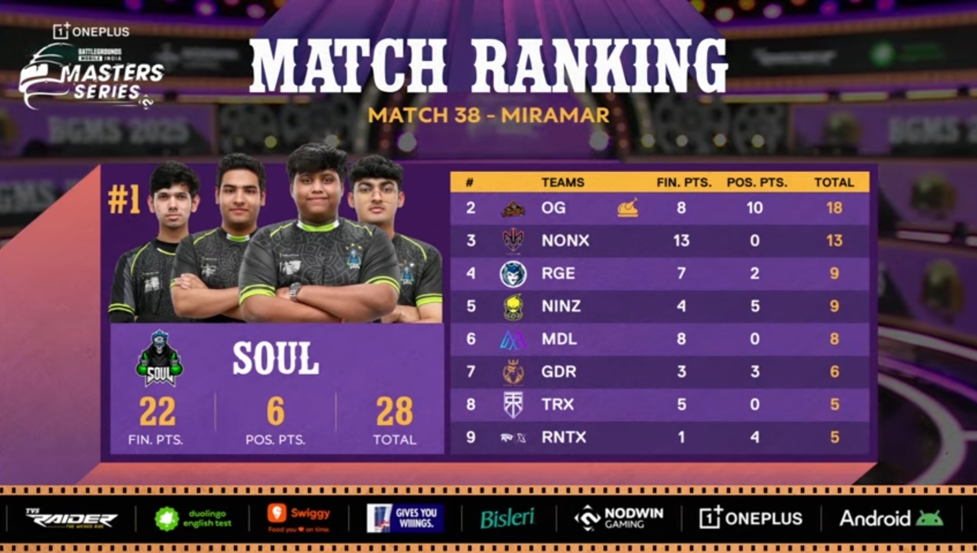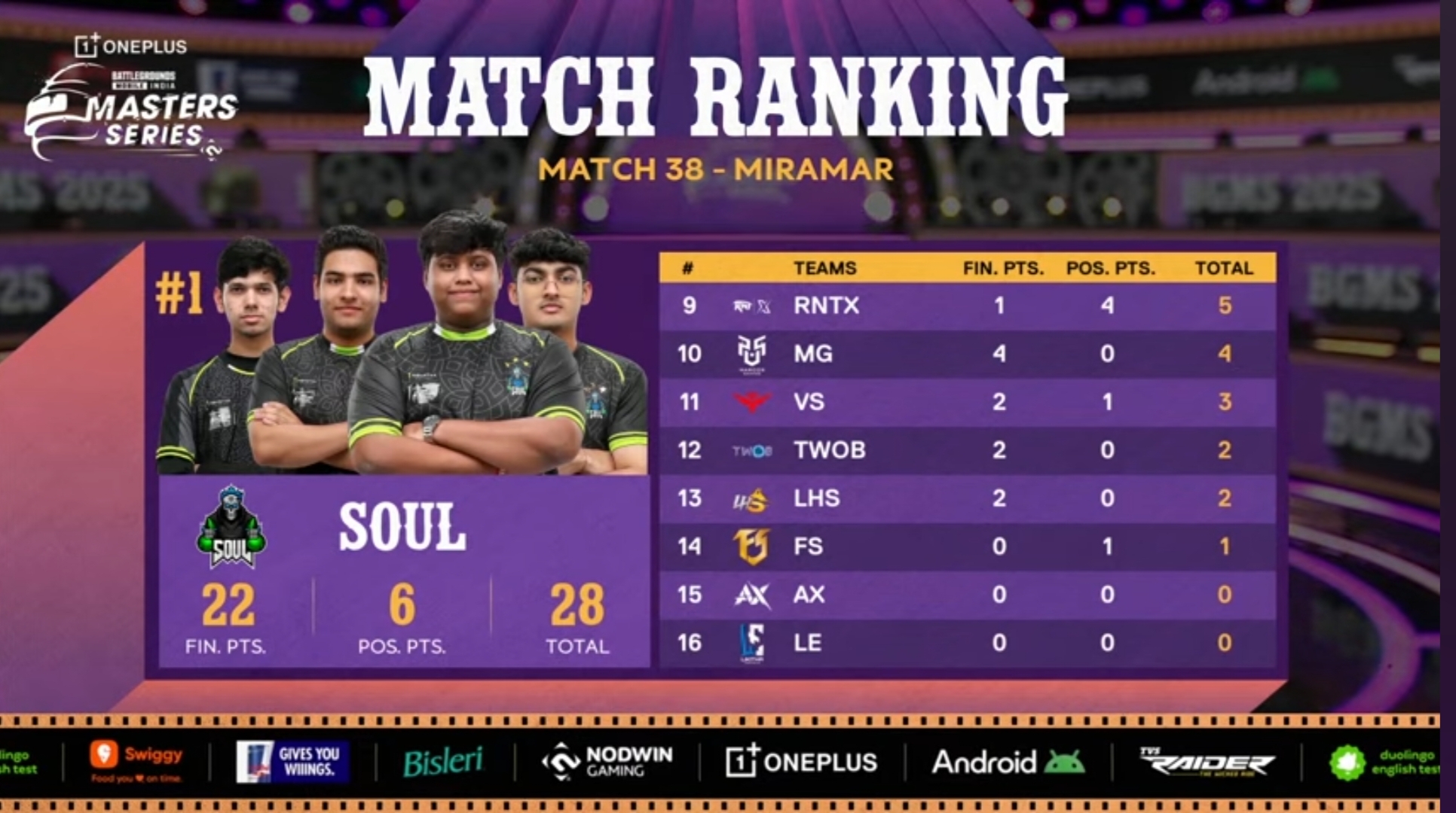 Orangutan emerged victorious with 18 points. Team Soul went on to play aggressively and achieved 28 points. Their star player, LEGIT, alone bagged seven kills. NoNx added 13 important points to their name.