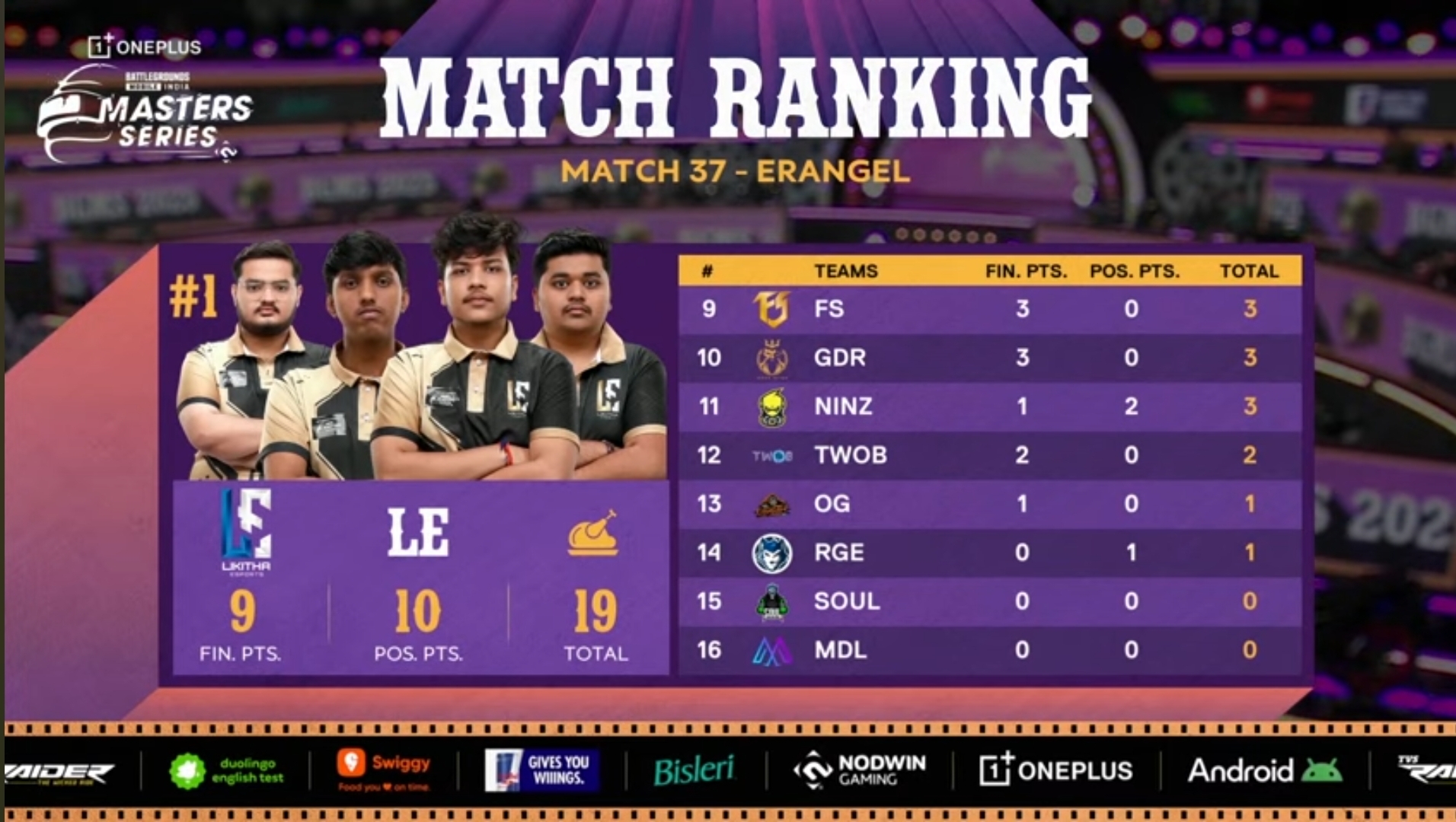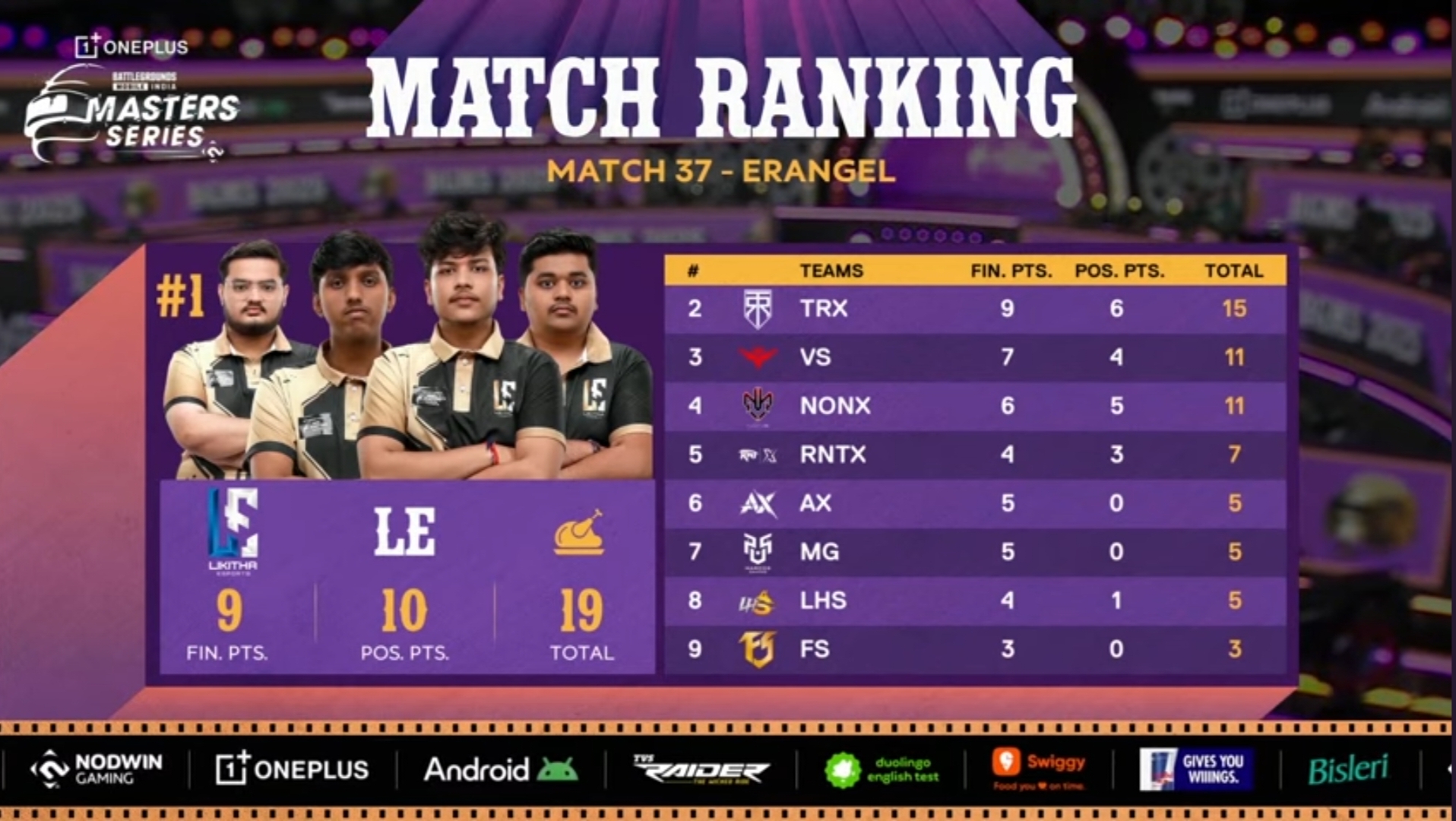Likitha Esports registered a 19-point victory in the opening game of the day. True Rippers, too, had a good run, bagging 15 points. Victores Sumus and NoNx accumulated 11 points each. Revenant XSpark secured seven points.