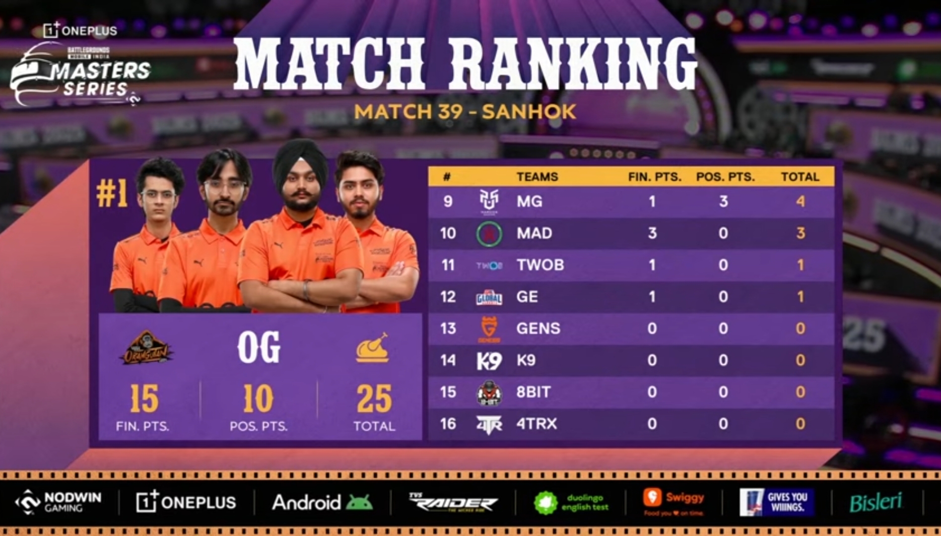 Orangutan secured their fourth Chicken Dinner of the BGMS with 25 points. Gods Reign also displayed impressive performances and grabbed 24 points. NoNx and Meta Ninza earned 10 and nine points, respectively.
