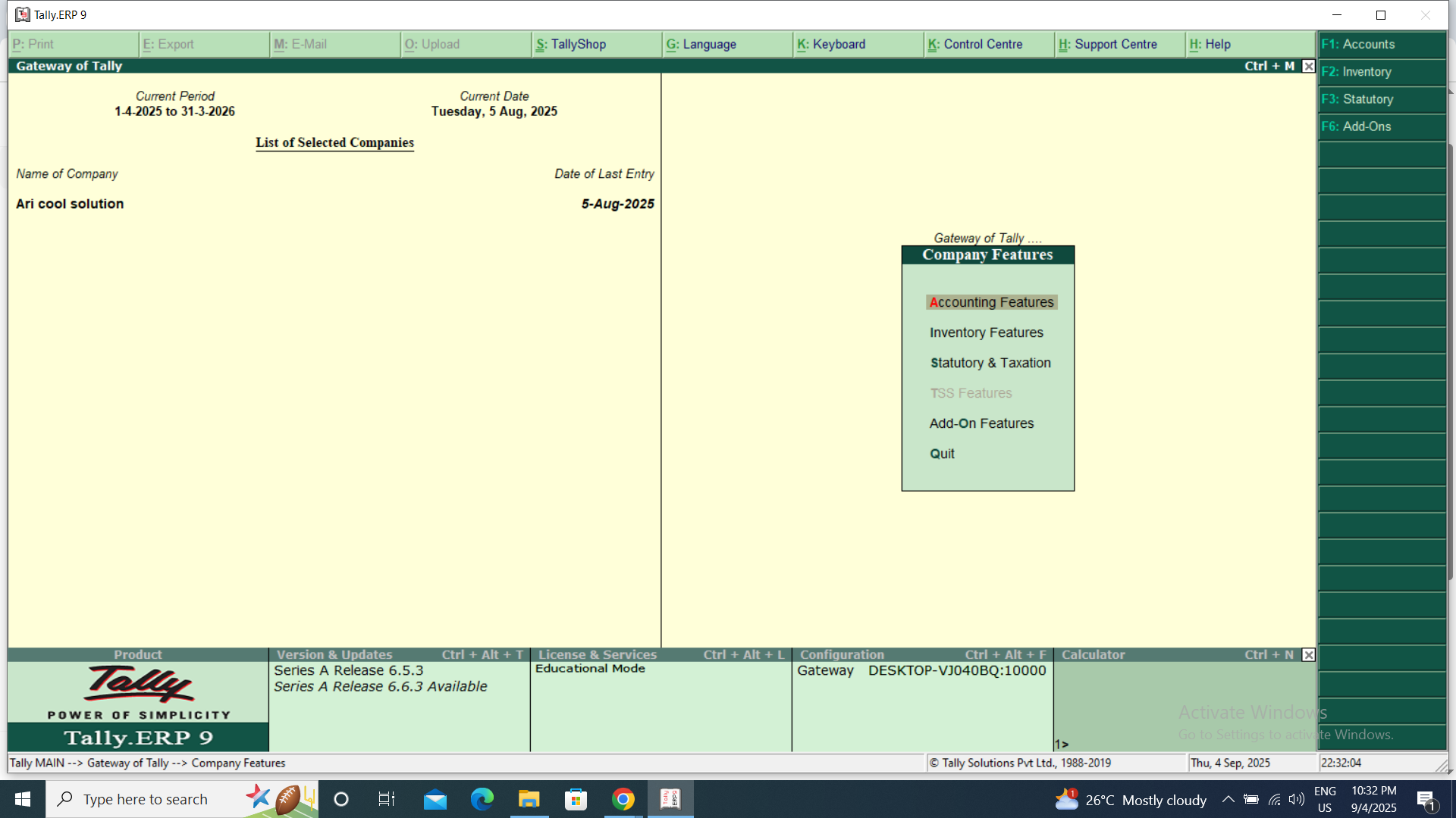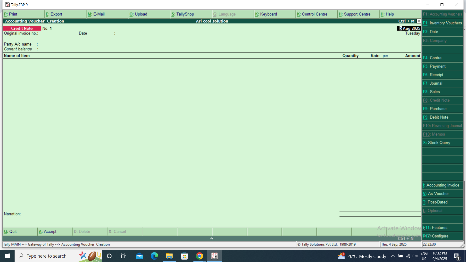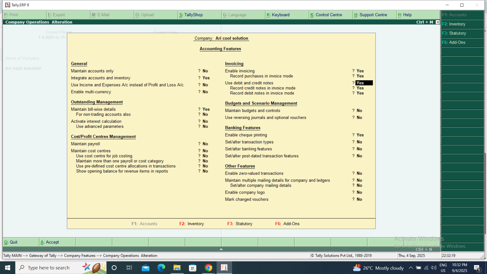 Debit & Credit Notes are important for handling returns, overcharges, and adjustments in accounting. Here’s how you can enable them in Tally: