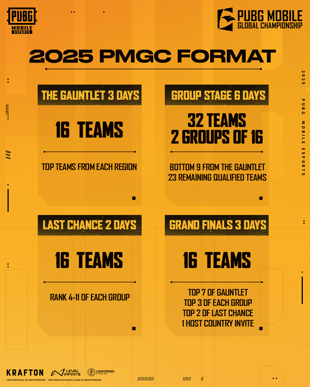 PMGC 2025 will be played in four stages: The Gauntlet, Group Stage, Last Chance, and Grand Finals.