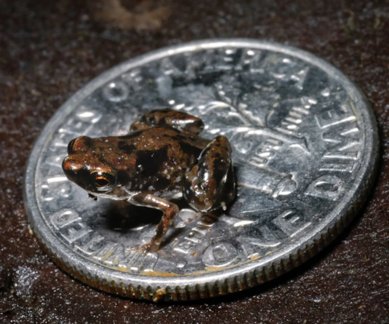 👉 Paedophryne amauensis, a tiny frog from Papua New Guinea.