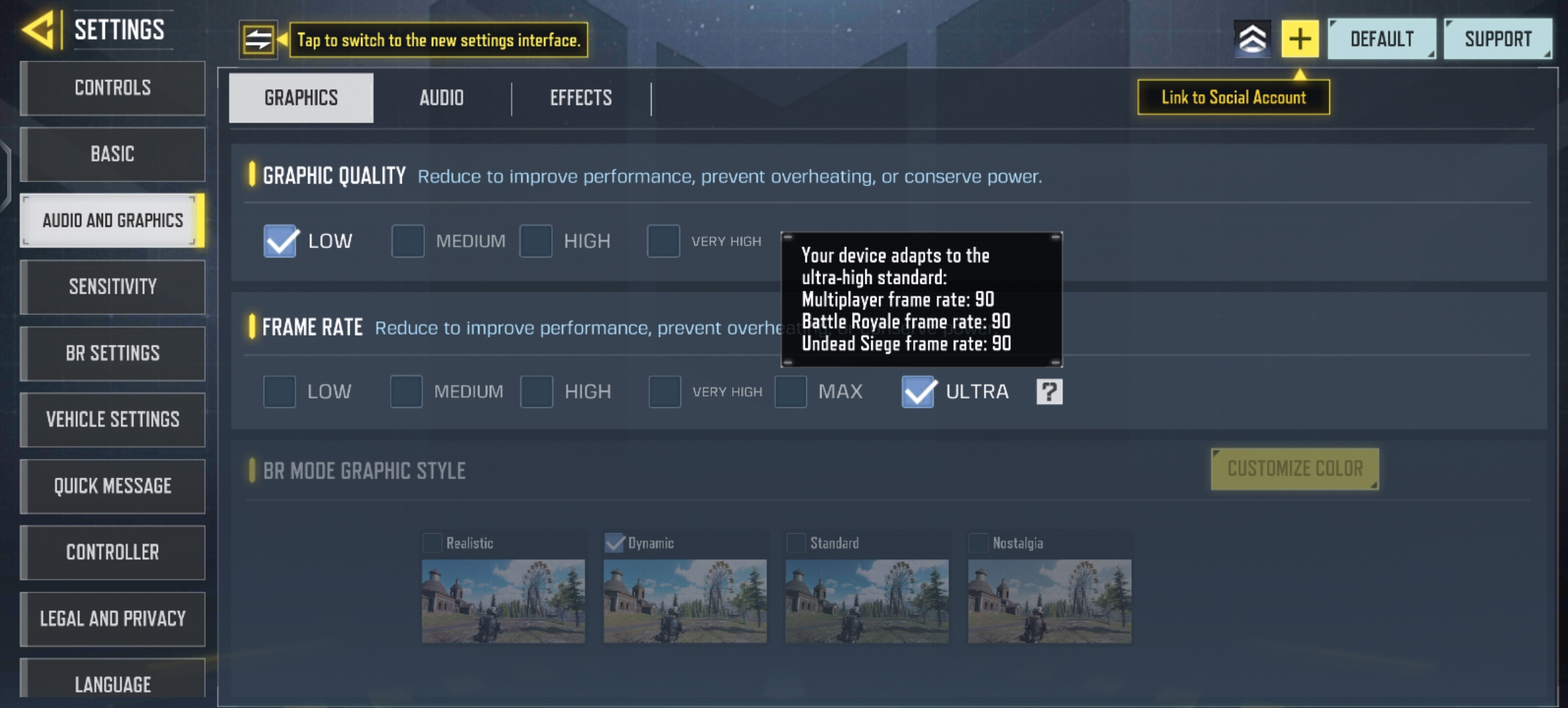 1) COD Mobile - Game runs great and Supports 90 FPS in all Modes and low setting. On higher settings only 60fps is available. Surprisingly 4D game Vibration support is not available in COD mobile but it is available in BGMI