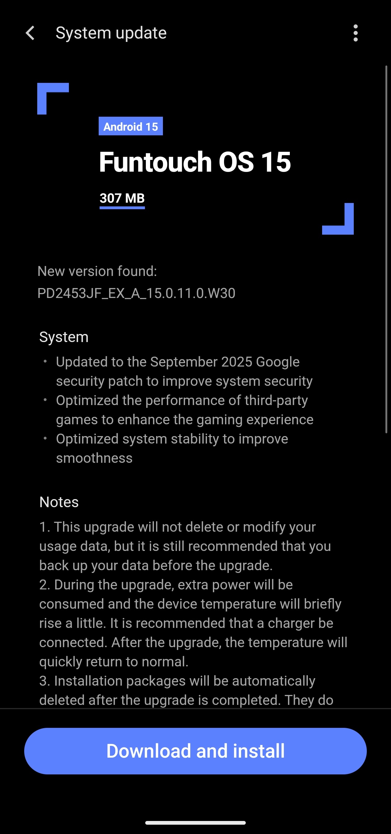 Update Size : 307 MB.