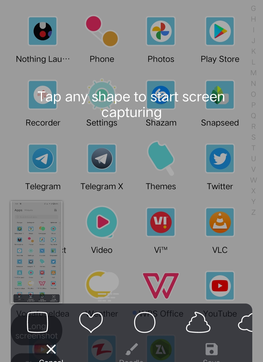 "Doodle screenshot" option from floating window appears on the bottom of the screen.