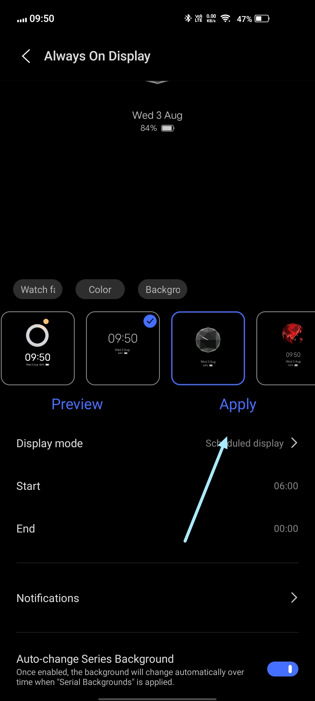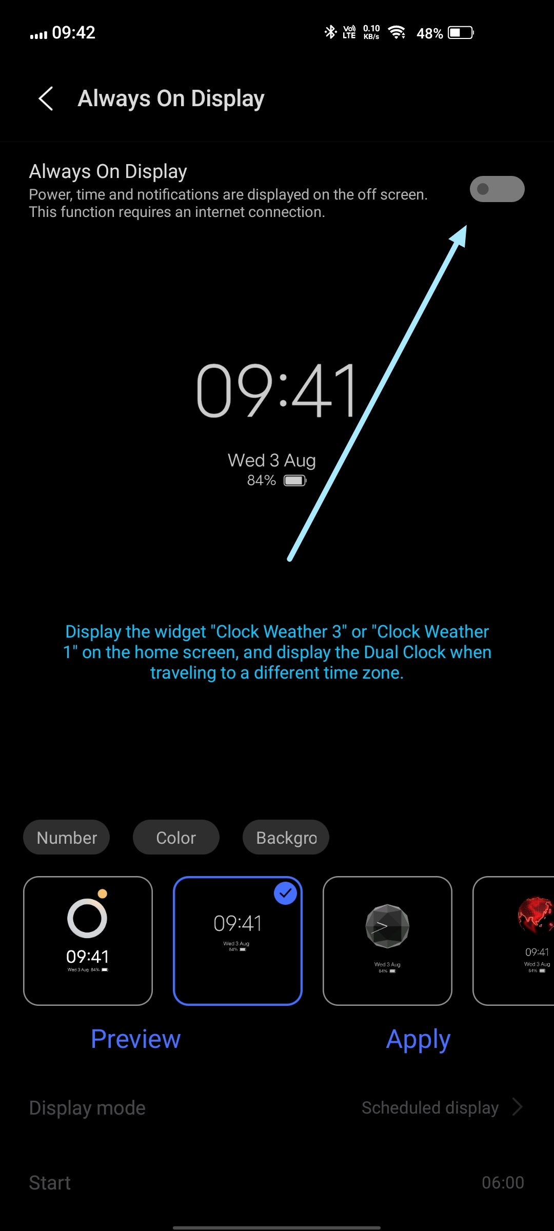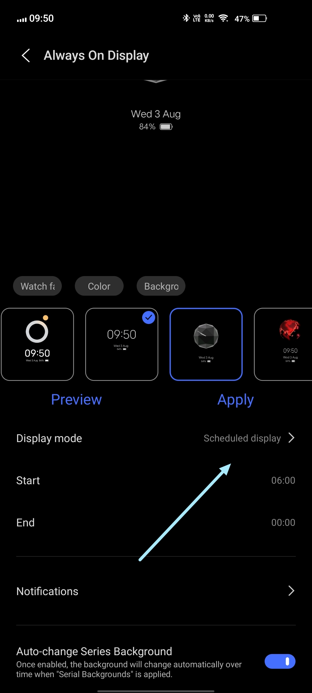 There is also a feature to schedule the timing for Always on Display to be on.