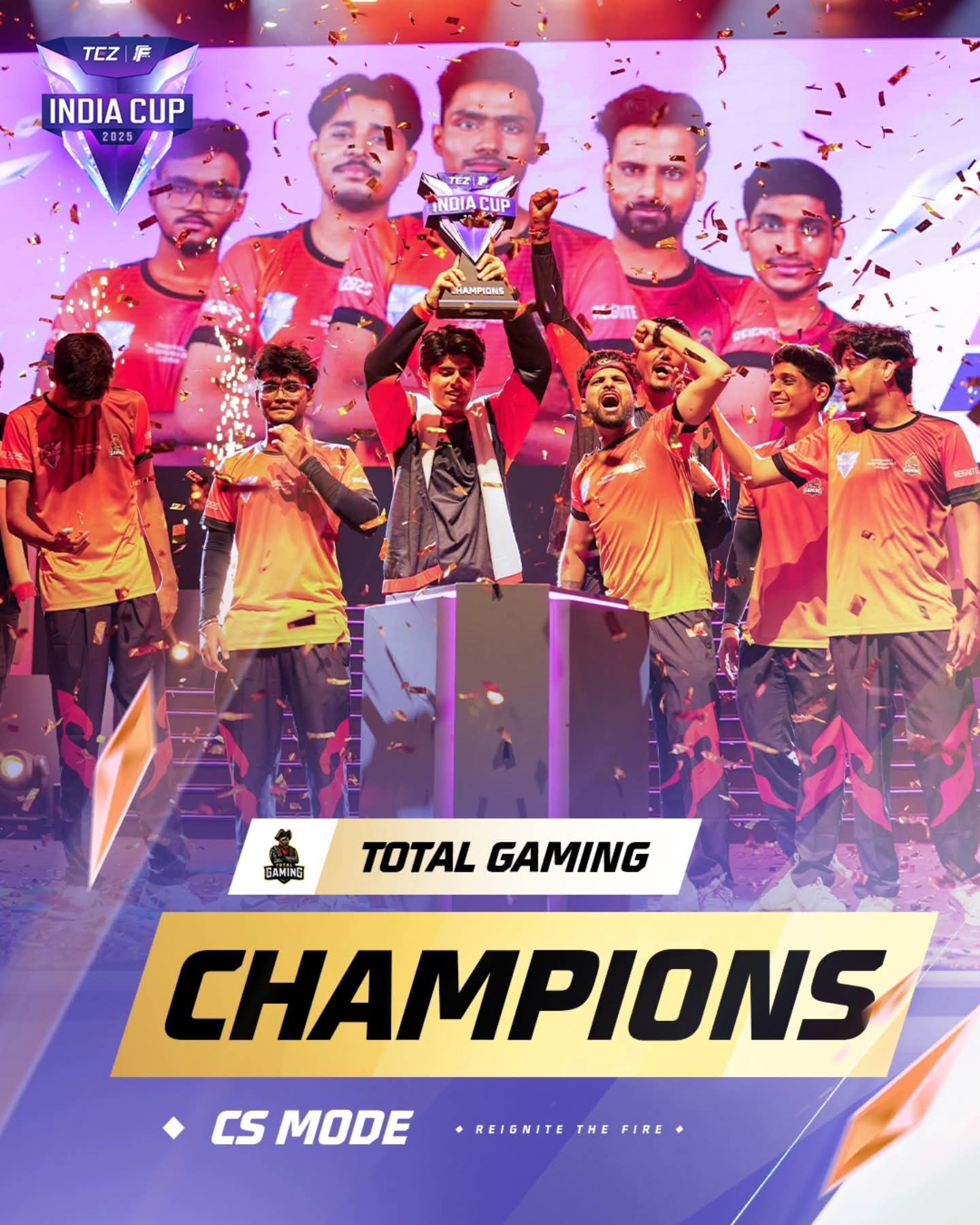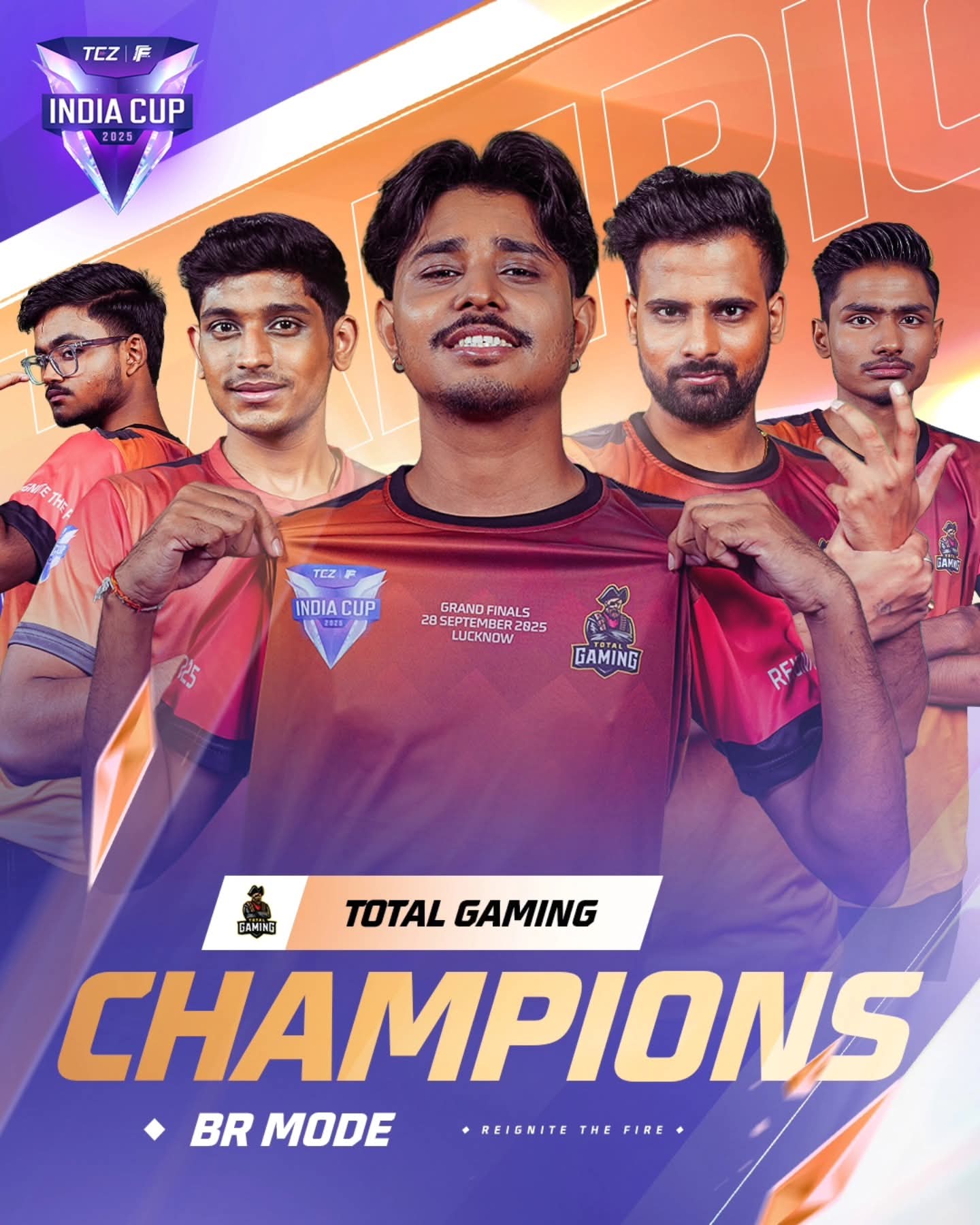 Total Gaming Esports, featuring players like Mafia, DELETE, AZTEC, SHANKY, and FozyAjay, wins the FFMIC 2025 Clash Squad mode on September 27 at Ekana International Indoor Stadium. The team has been oustanding throughout the tournament.