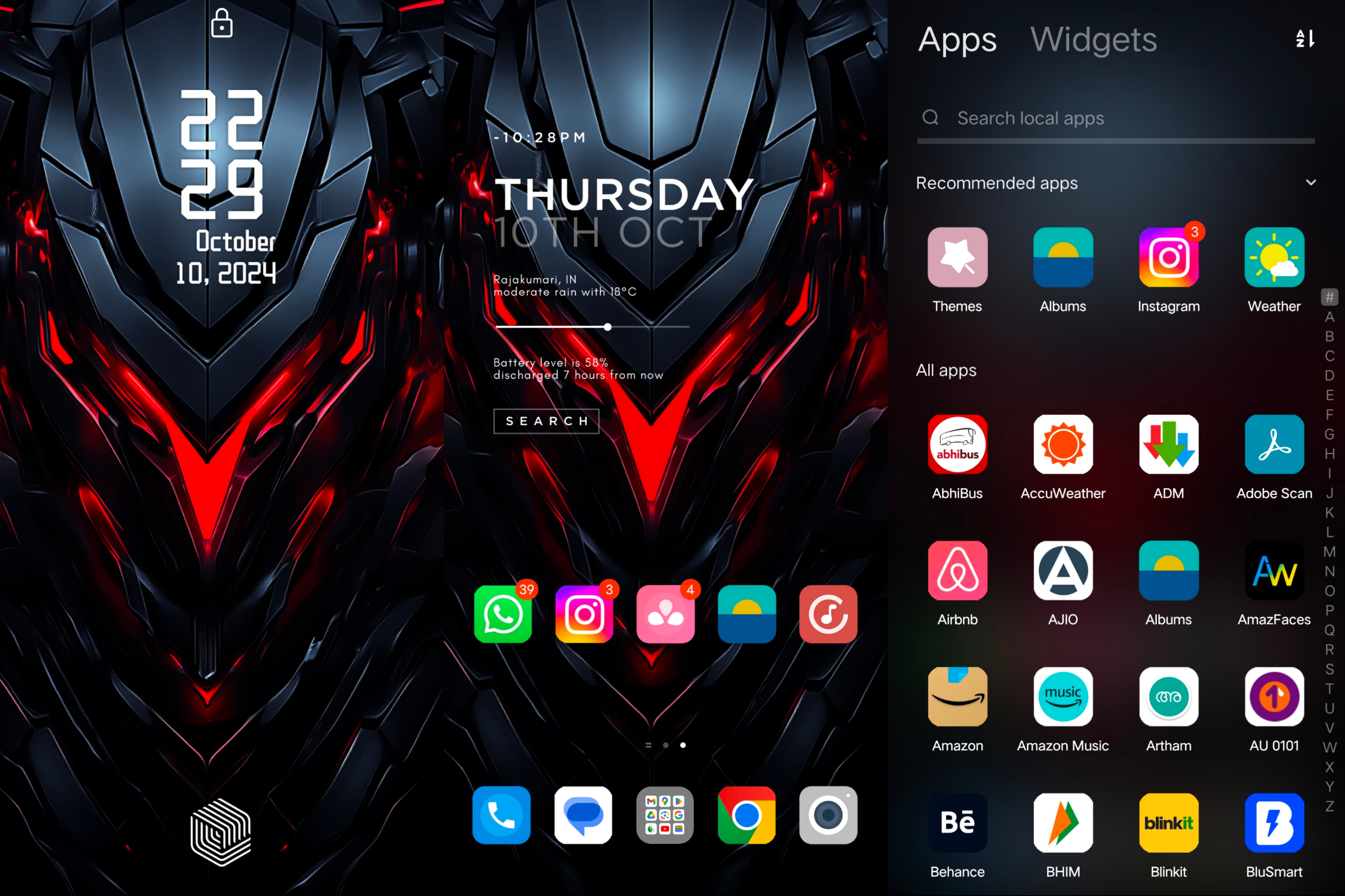 Unleash the futuristic vibe with this cool theme. Featuring sleek mechanical elements with bold red accents against a black backdrop, this theme gives your device a cutting-edge, cyberpunk feel that's both stylish and powerful.