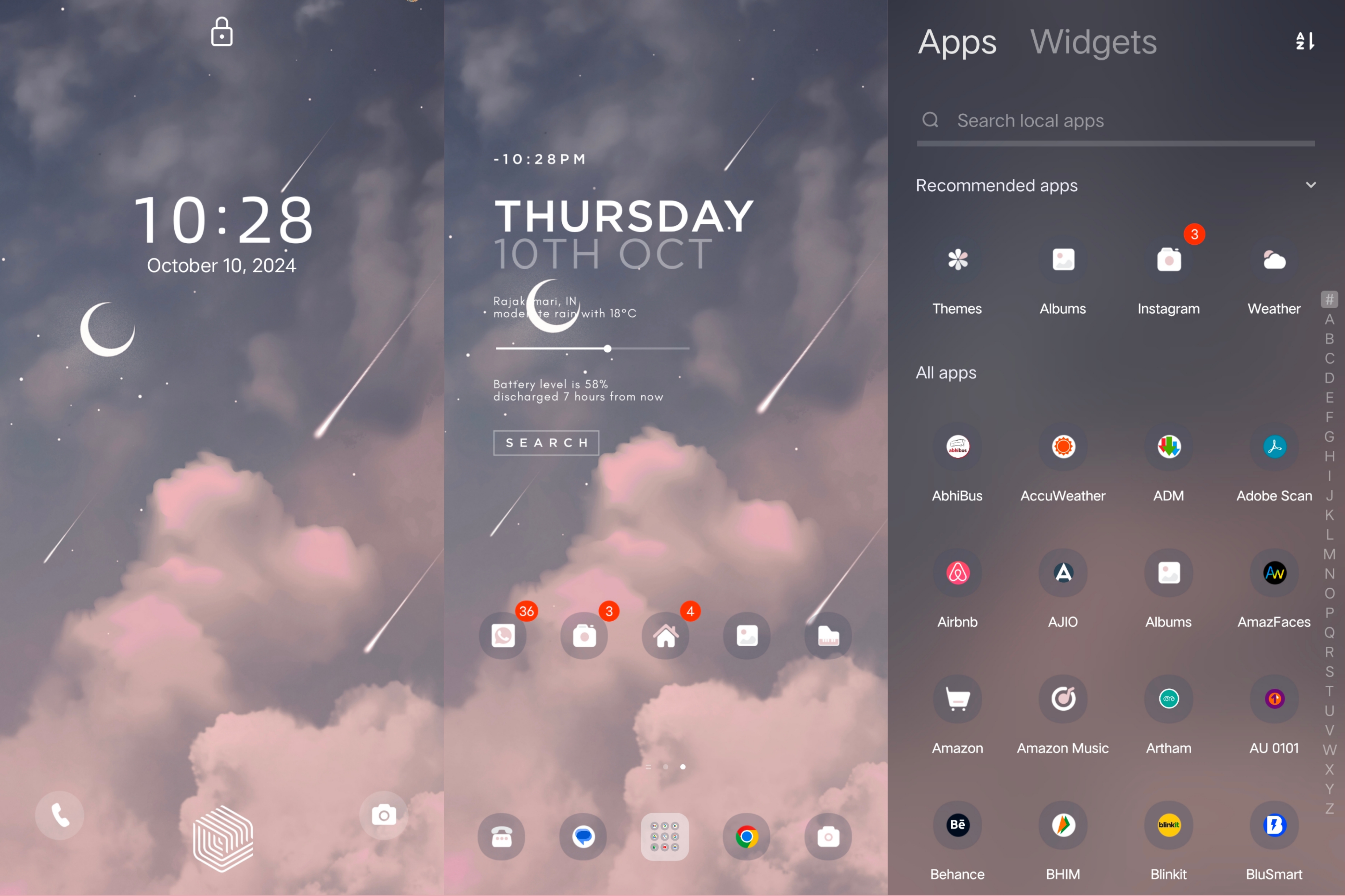 Embrace the calm and serenity of the night with the celestial-inspired theme featuring soft moonlit tones and dreamy starry skies, giving your phone a soothing, otherworldly charm every time you unlock it.