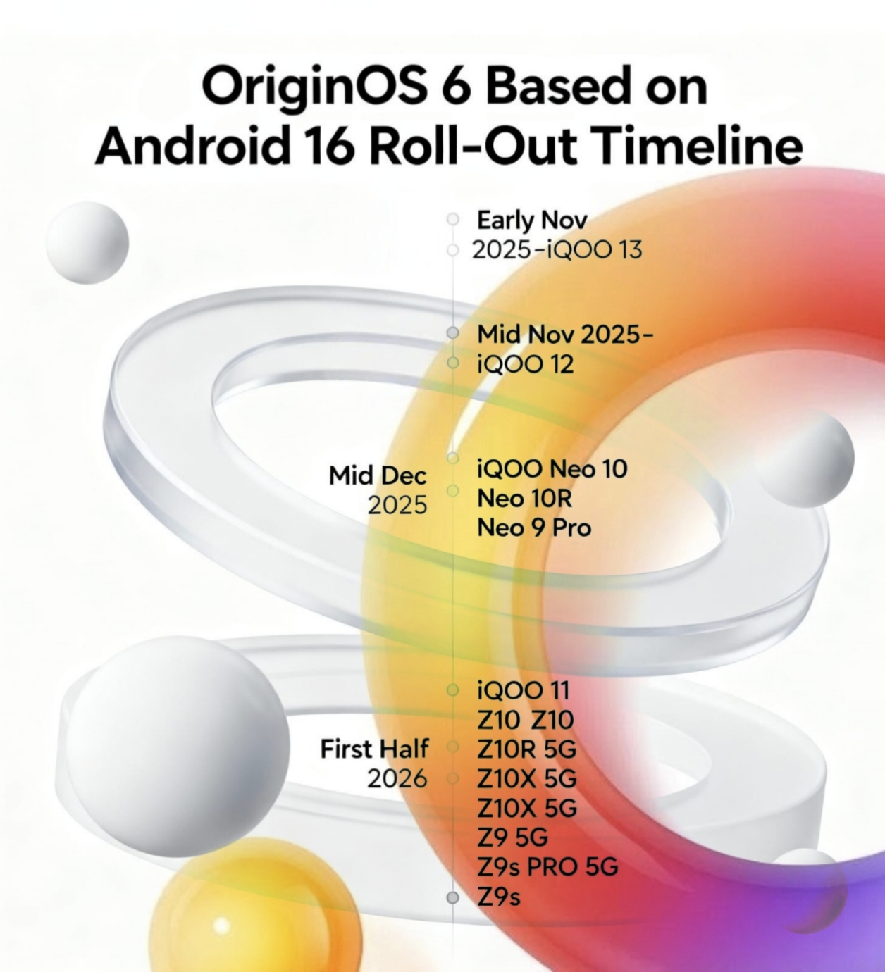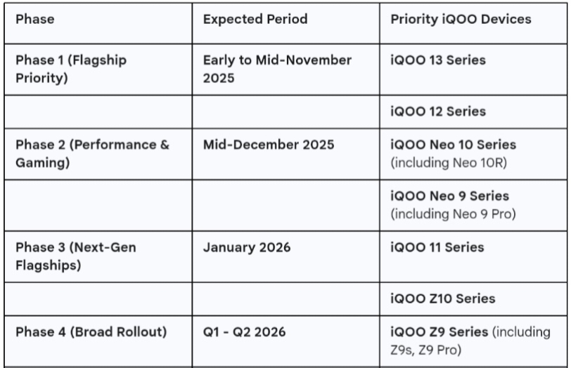 The OriginOS 6 update will be delivered in waves, prioritizing recent flagship and high-performance models first.