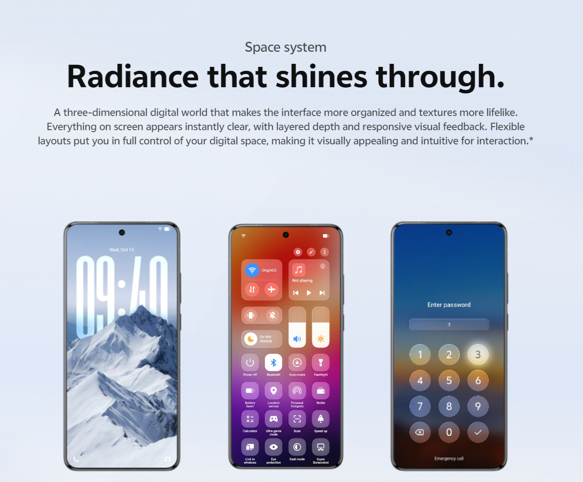 OriginOS 6 features may vary by model, region, and system version. Some options, like Space System, Dynamic Glow, Origin Island, and Ultra-Core Computing, are limited to select Vivo and iQOO devices. Availability and performance depend on device configuration and regional rollout updates.