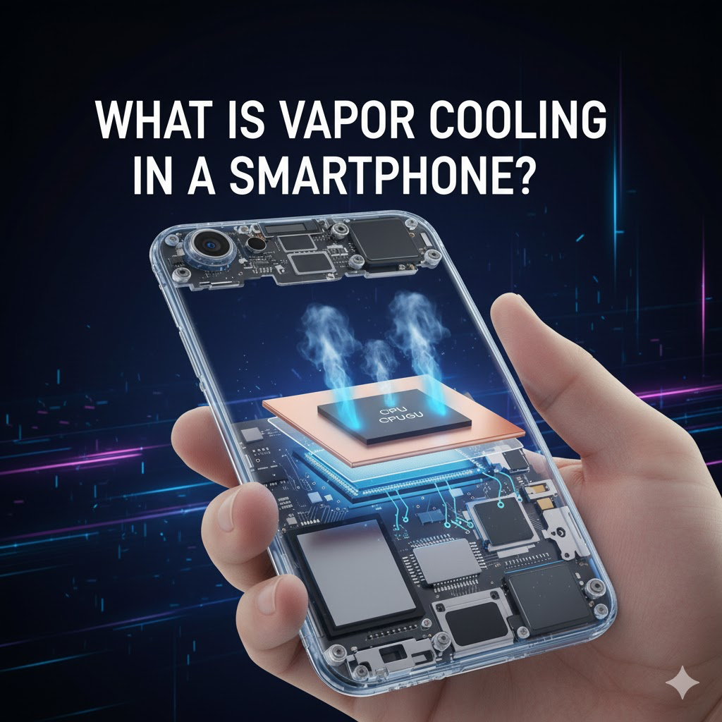 Vapor cooling uses a vapor chamber, a tiny sealed metal plate filled with liquid. When your phone heats up, this liquid turns into vapor, spreading heat evenly across the chamber. As the vapor cools down, it condenses back into liquid, and the cycle repeats — keeping your phone's temperature balanced and performance steady.