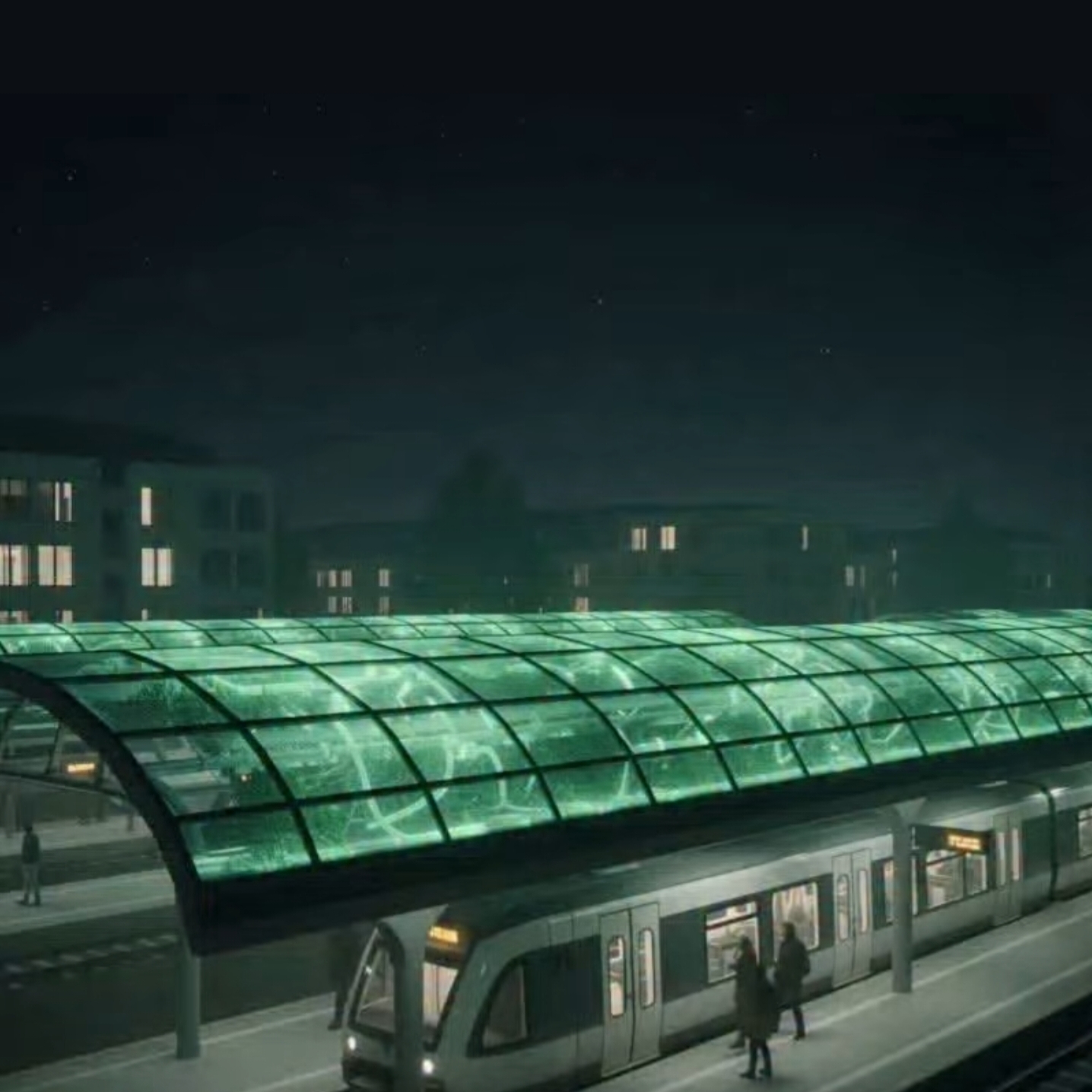 - Aesthetic Appeal: The glowing green roofs transform public transportation spaces, making them attractive and inviting even after dark.