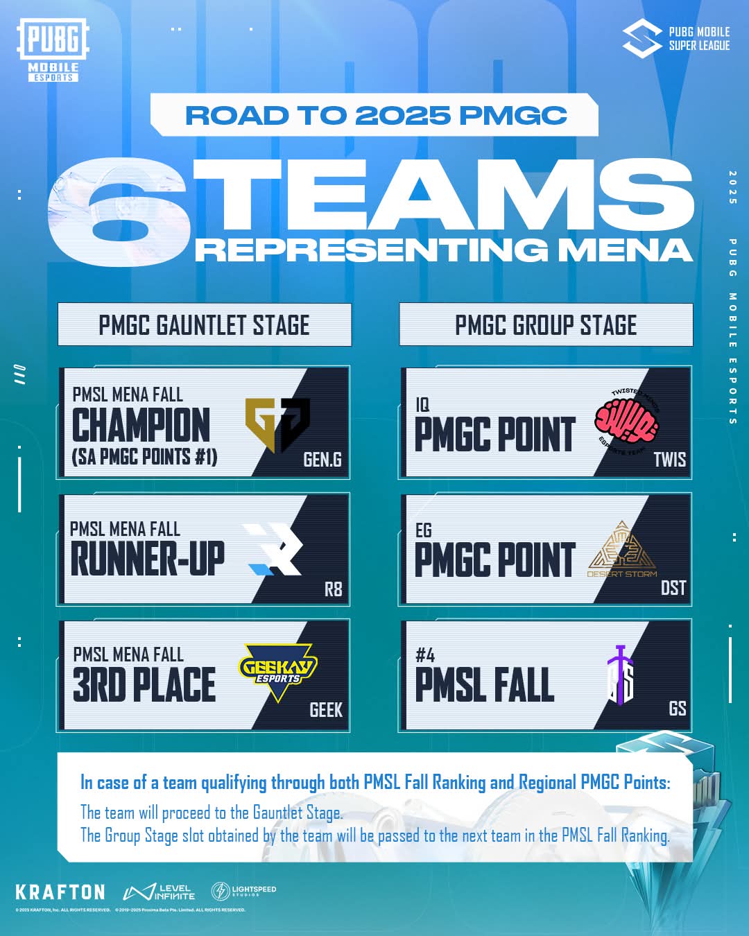 Gen.G, R8, and Geekay have advanced to the Gauntlet Stage of the PUBG Mobile Global Championship 2025, while GS, Twisted Minds, and Desert Storm have been selected for the Group Stage of the Championship. The PMGC 2025 will kick off on November 24 with 39 teams.