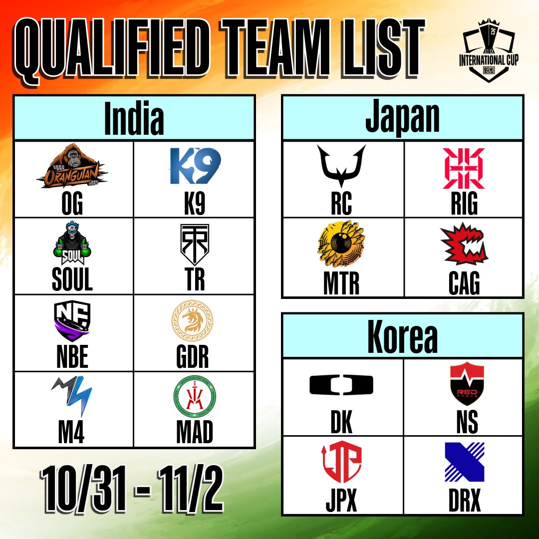 - India ( 8 teams from Showdown ) e.g. , Orangutan Gaming ( Showdown winner ) , K9 Esports , Team Soul , True Rippers , Gods Reign , Nebula Espor , Mysterious4 , Madkings .