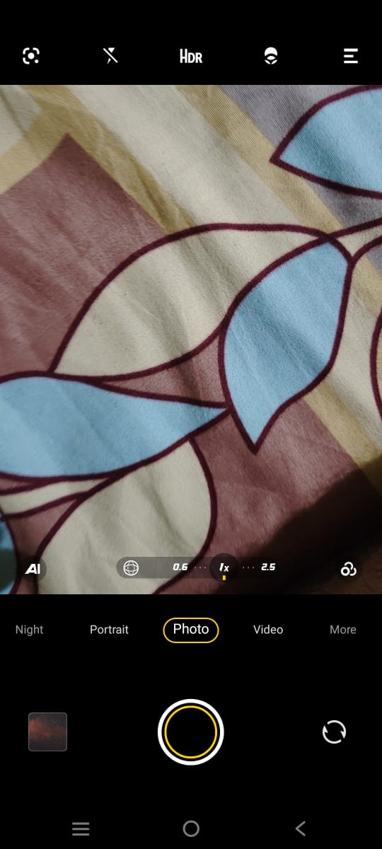 The camera setup's user interface is quite conventional, with the preview, shutter, and camera control located at the bottom. Toggle switches are available to activate several modes, including HDR, super macro, stabilisation, etc. Other video modes include Dual video, Slo-mo, Time Lapse Pro, Night mode, and Portrait mode. The primary camera's gimbal stabilisation allows it to capture stable films and crisp images of moving objects like a sprinting dog etc .