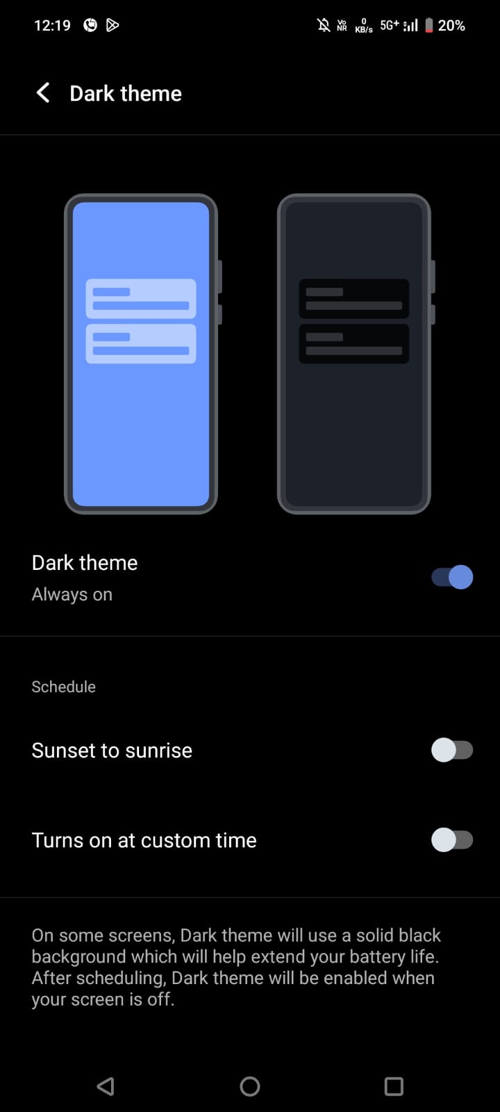 Dark Mode isn't just aesthetic; it's a practical hack for reducing eye strain and, on AMOLED screens, saving battery.