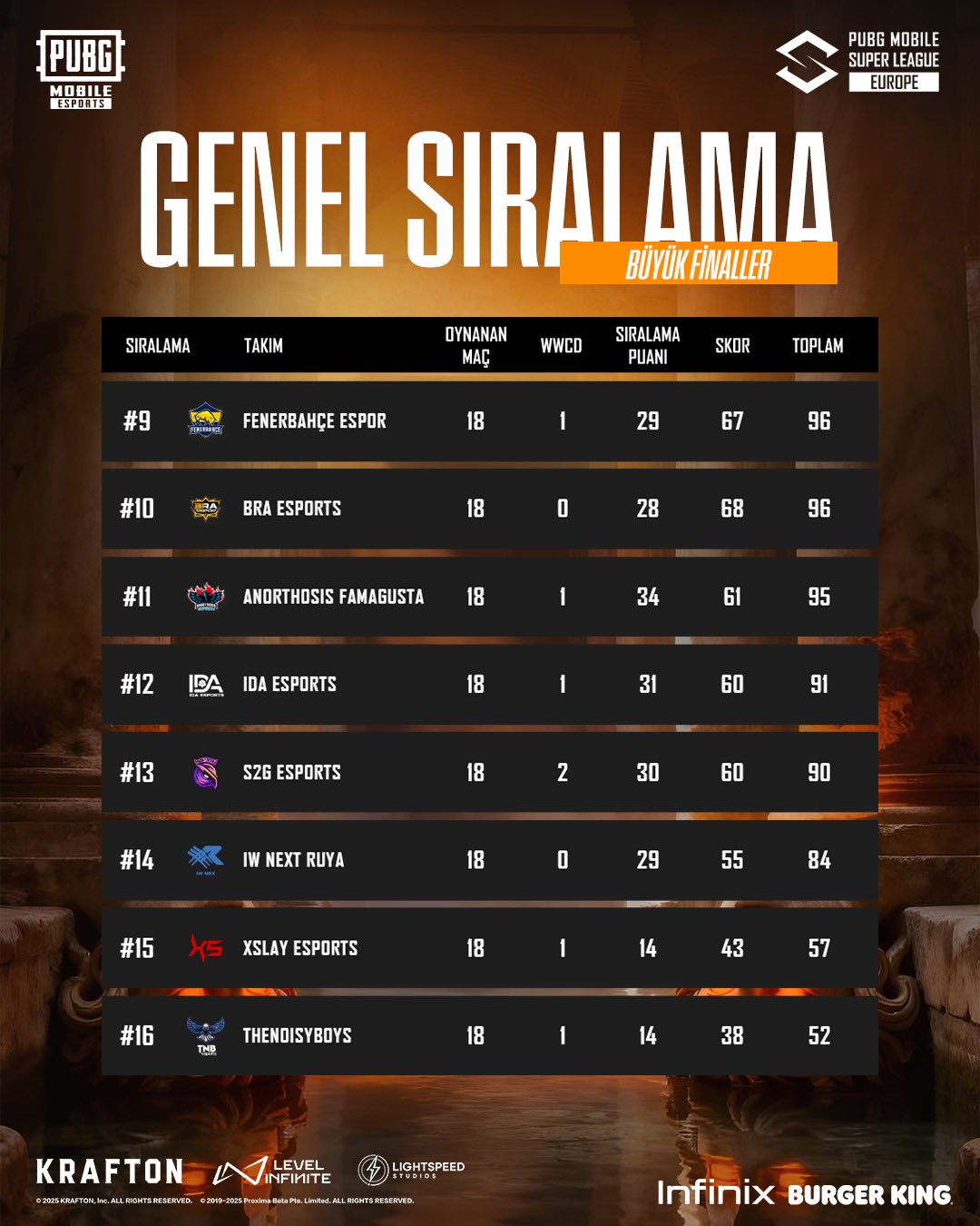 Team Falcons ranked fourth in the PMSL EU Fall with 130 points. Papara Supermassive came fifth with 125 points. Besiktas Getso and Asgard were sixth and seventh with 106 and 103 points, respectively. IDA faltered in the Grand Finals, ending up in 12th place with 91 points.