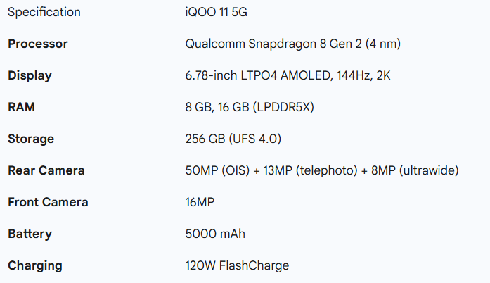 The iQOO 11 5G, launched on January 10, 2023, was a landmark device, being the first smartphone in India to feature the formidable Snapdragon 8 Gen 2 chipset. This launch signaled a strategic consolidation; the "Pro" model was not introduced in India, allowing iQOO to focus its marketing on a single, powerful flagship. With a starting price of ₹59,999, the iQOO 11 also showcased the brand's growing emphasis on a more holistic user experience, incorporating the dedicated V2 imaging chip to enhance photography.