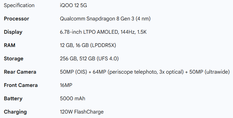 Continuing its tradition, iQOO launched the iQOO 12 on December 12, 2023, making it India's first smartphone powered by the Qualcomm Snapdragon 8 Gen 3 chipset. Priced competitively starting at ₹52,999, the iQOO 12 represented a significant step in the brand's evolution. It featured a thoroughly upgraded triple-camera system, including a periscope telephoto lens, signaling a clear intent to compete not just on raw performance but also on photographic prowess, targeting a more mainstream premium audience.