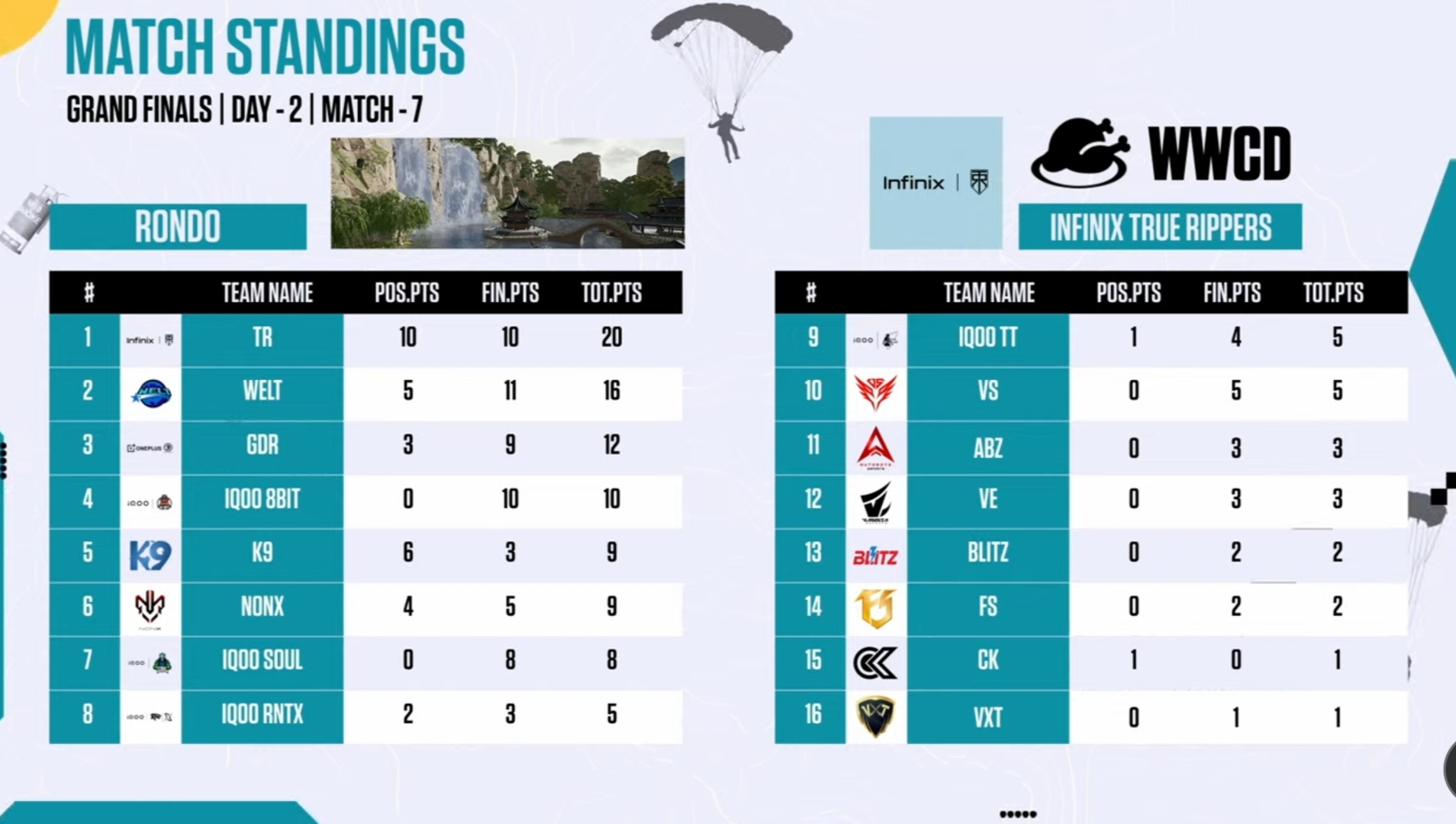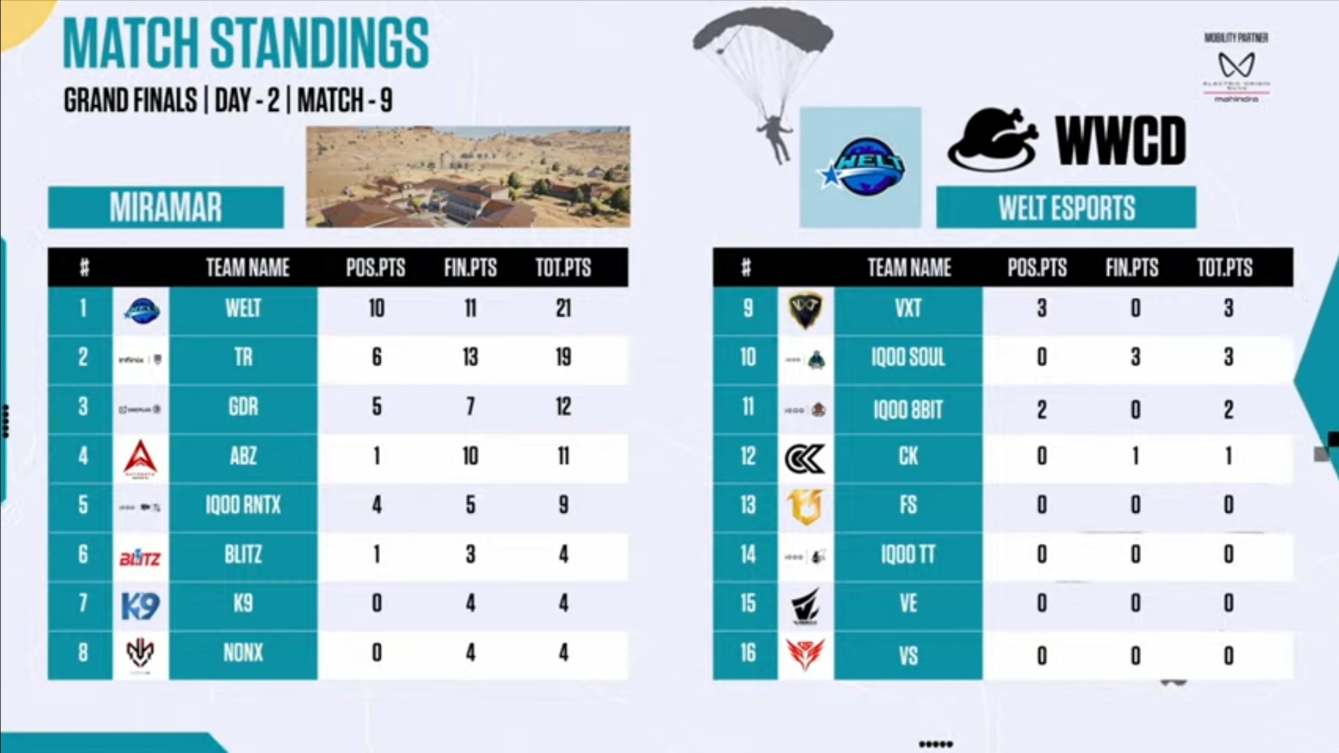 True Rippers kicked off the second day with a brilliant 20-point Chicken Dinner. Welt also played well and added 16 points to their name. Gods Reign and 8Bit garnered 12 and 10 points, respectively.
