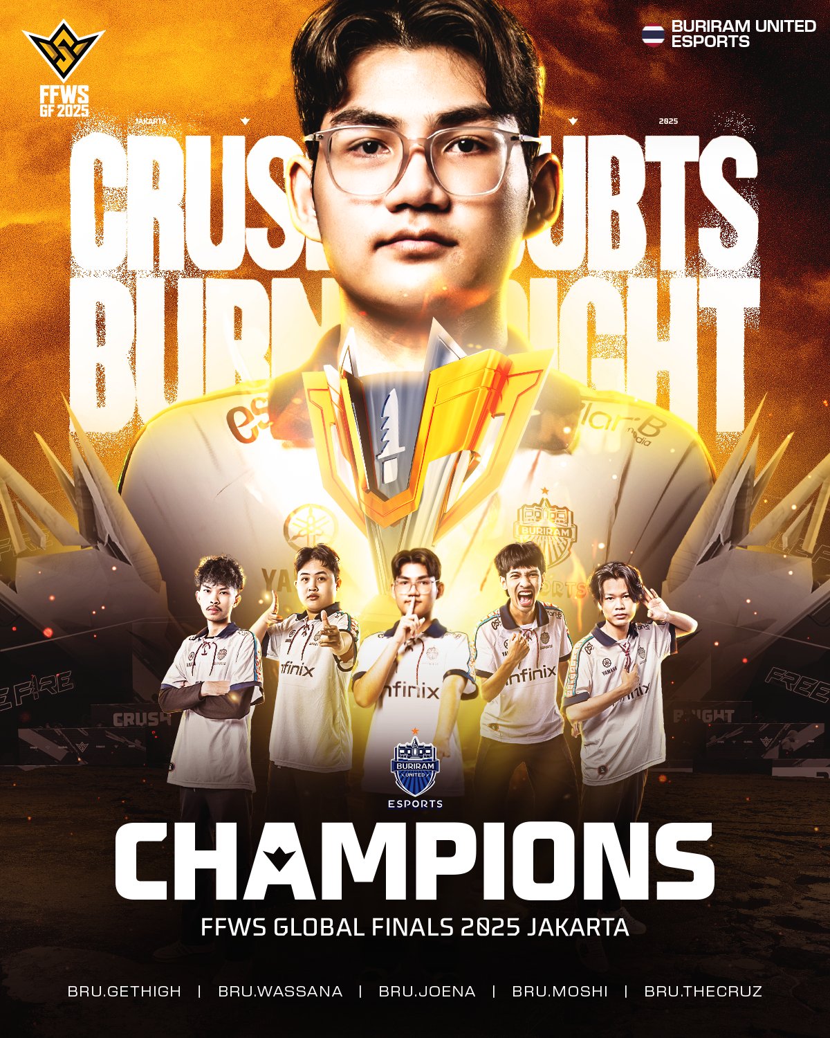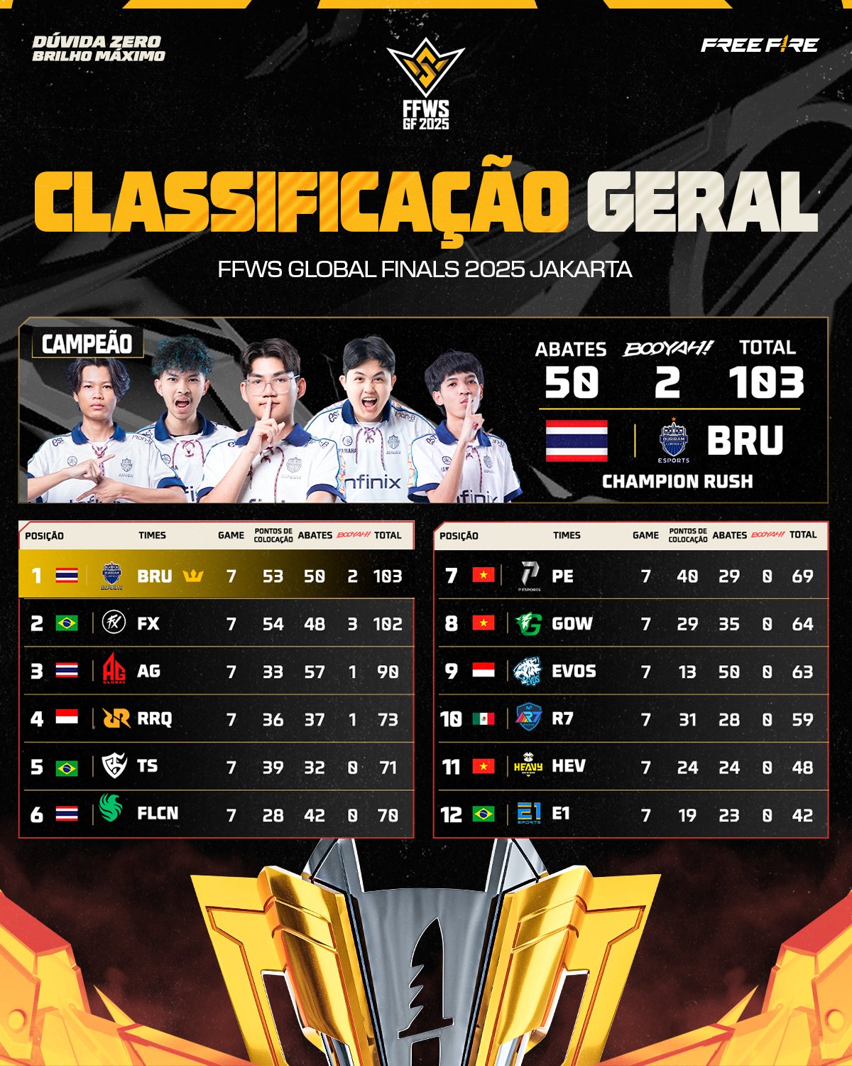 Buriram United Esports has been crowned the champion of the Free Fire World Series (FFWS) 2025 Global Finals in the Battle Royale (BR) mode, delivering a thrilling performance that secured Thailand another global esports trophy.
