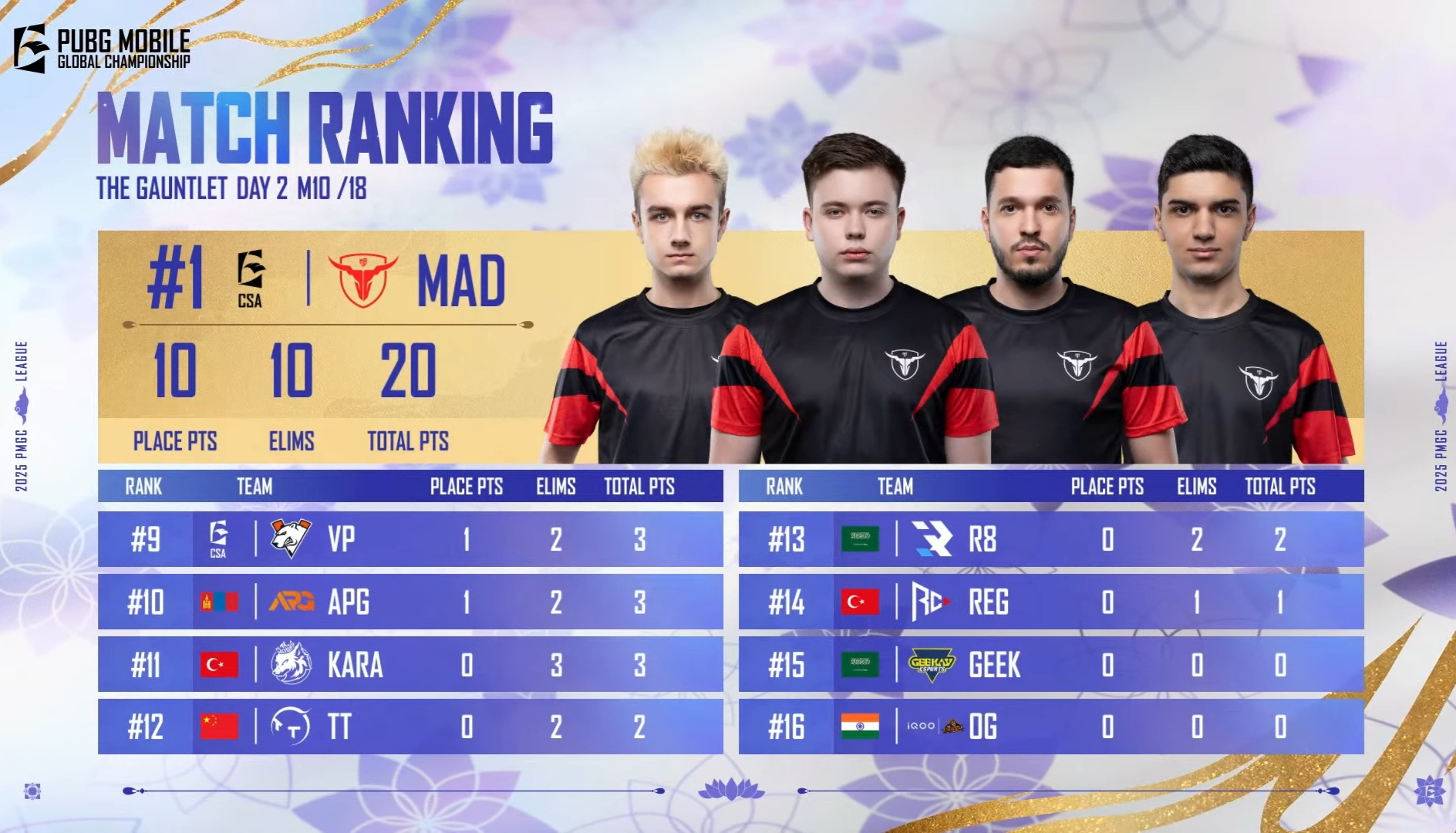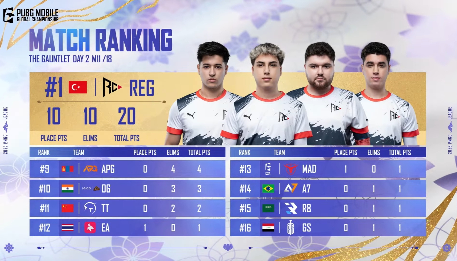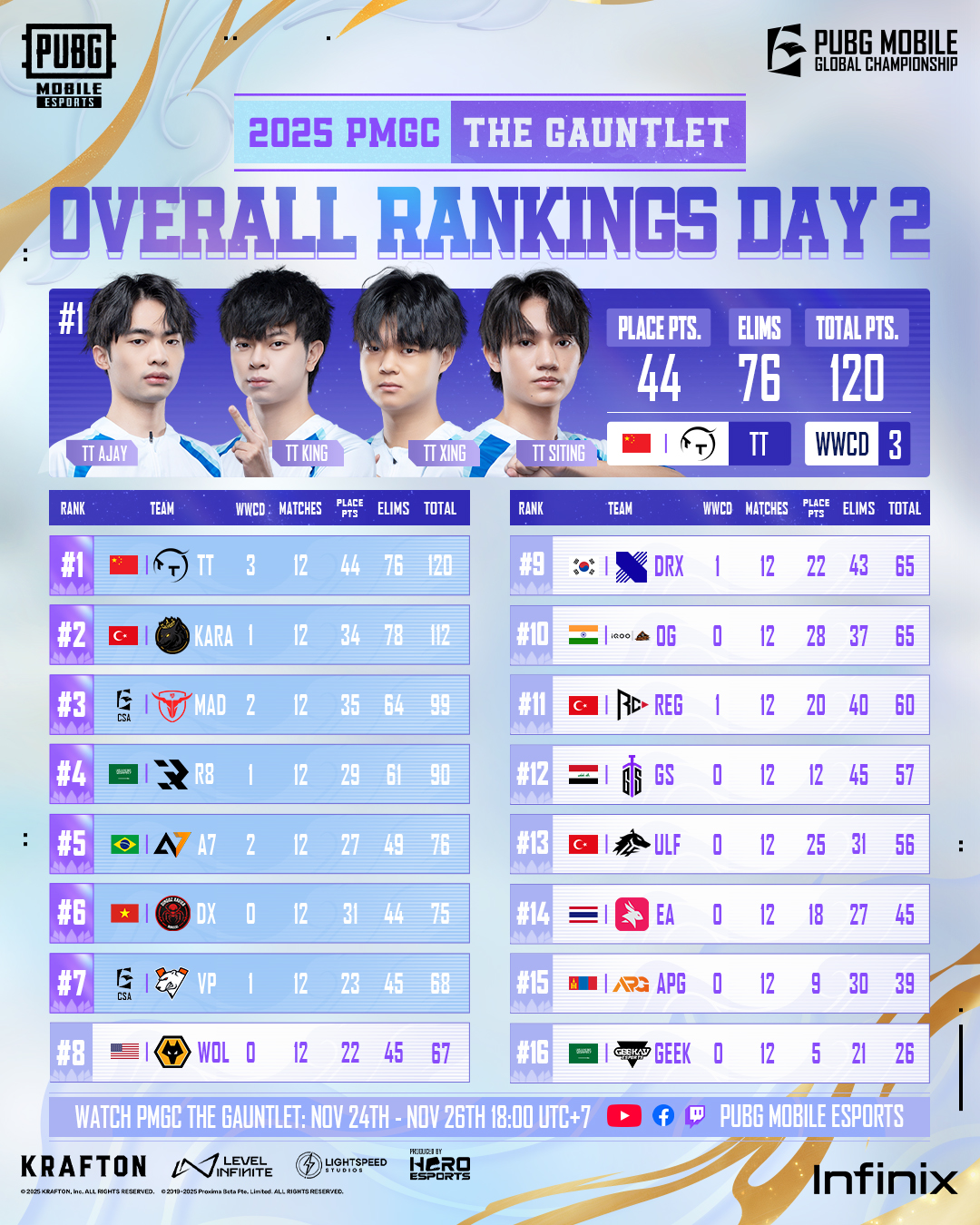 The remaining six matches of the Gauntlet Stage will be played on November 26. The best seven teams will progress to the PMGC 2025 Grand Finals, while the bottom nine teams will play in the Group Stage.