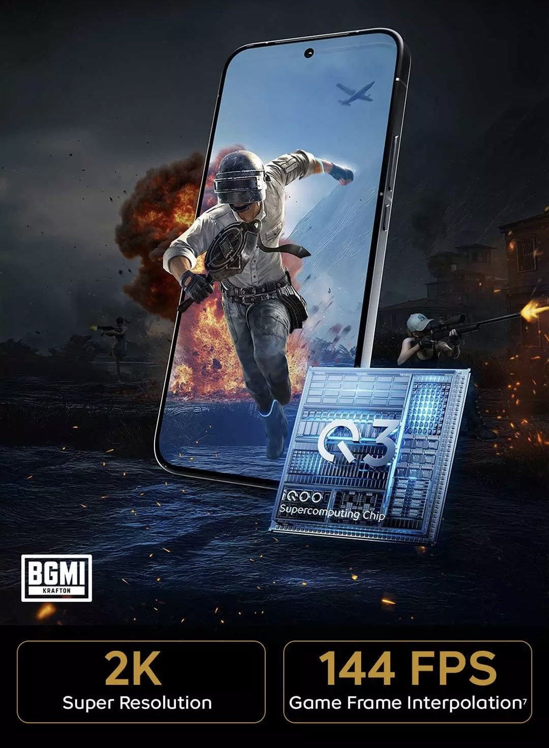 • Gaming Chip: The proprietary Q3 Supercomputing Chip now supports 144FPS frame interpolation in mainstream titles like BGMI and COD Mobile.