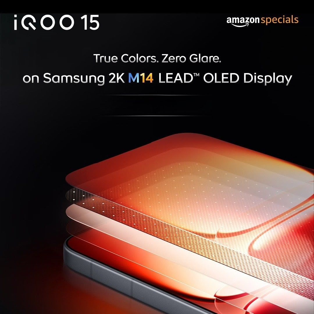 iQOO 15 Features a brilliant 6.85-inch Samsung M14 LTPO OLED display with a 144Hz refresh rate, 2K resolution, and up to 6,000 nits peak brightness for immersive visuals.