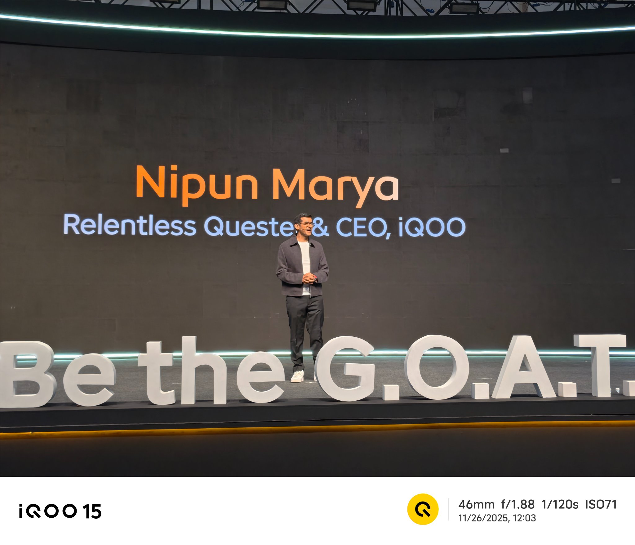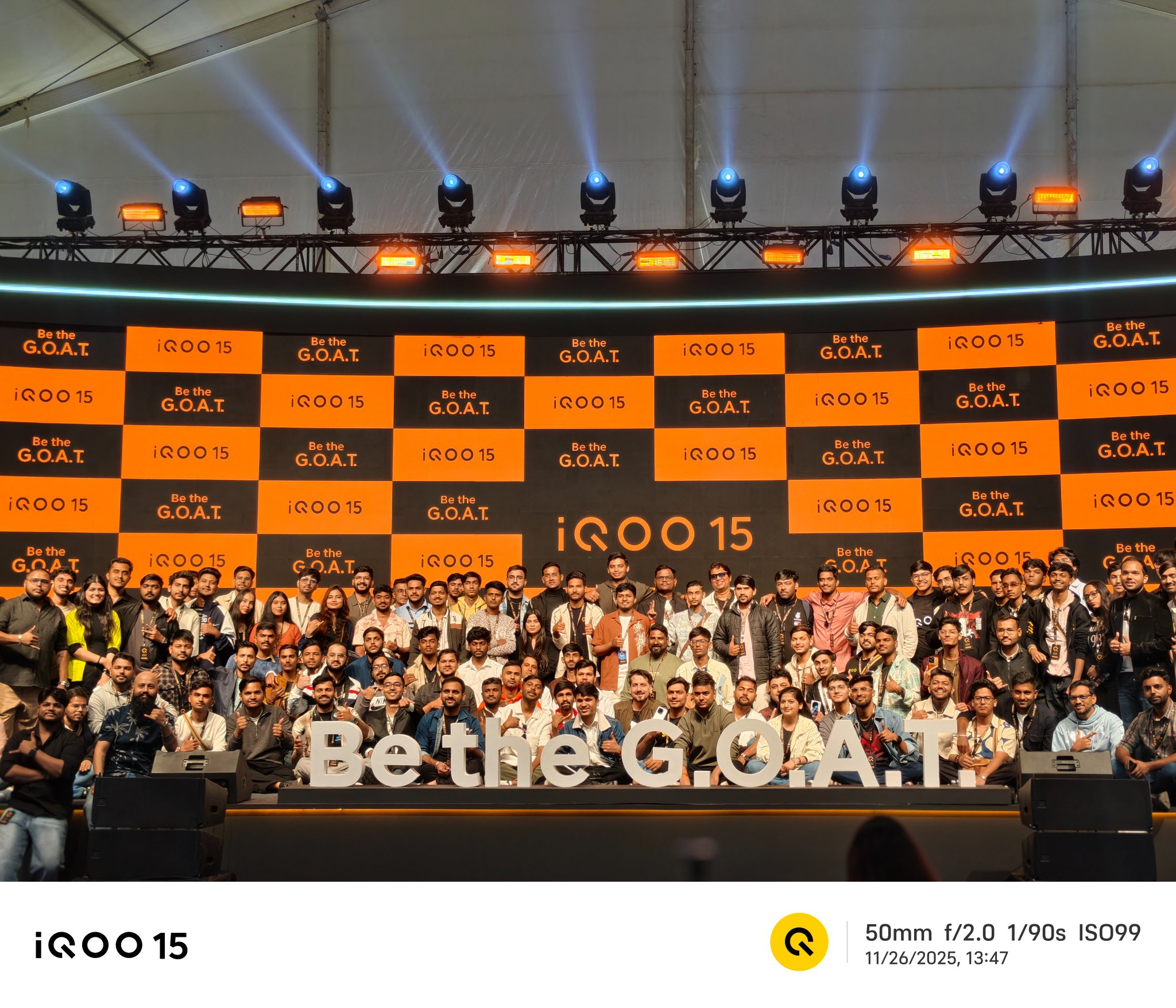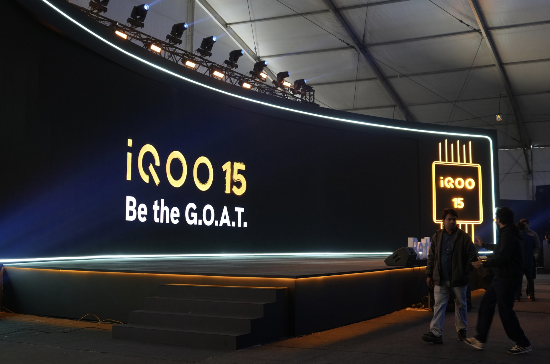 The stage was all set with the vibrant lights and a massive screen displaying the iQOO 15 logo. The venue was filled with excitement and energy.