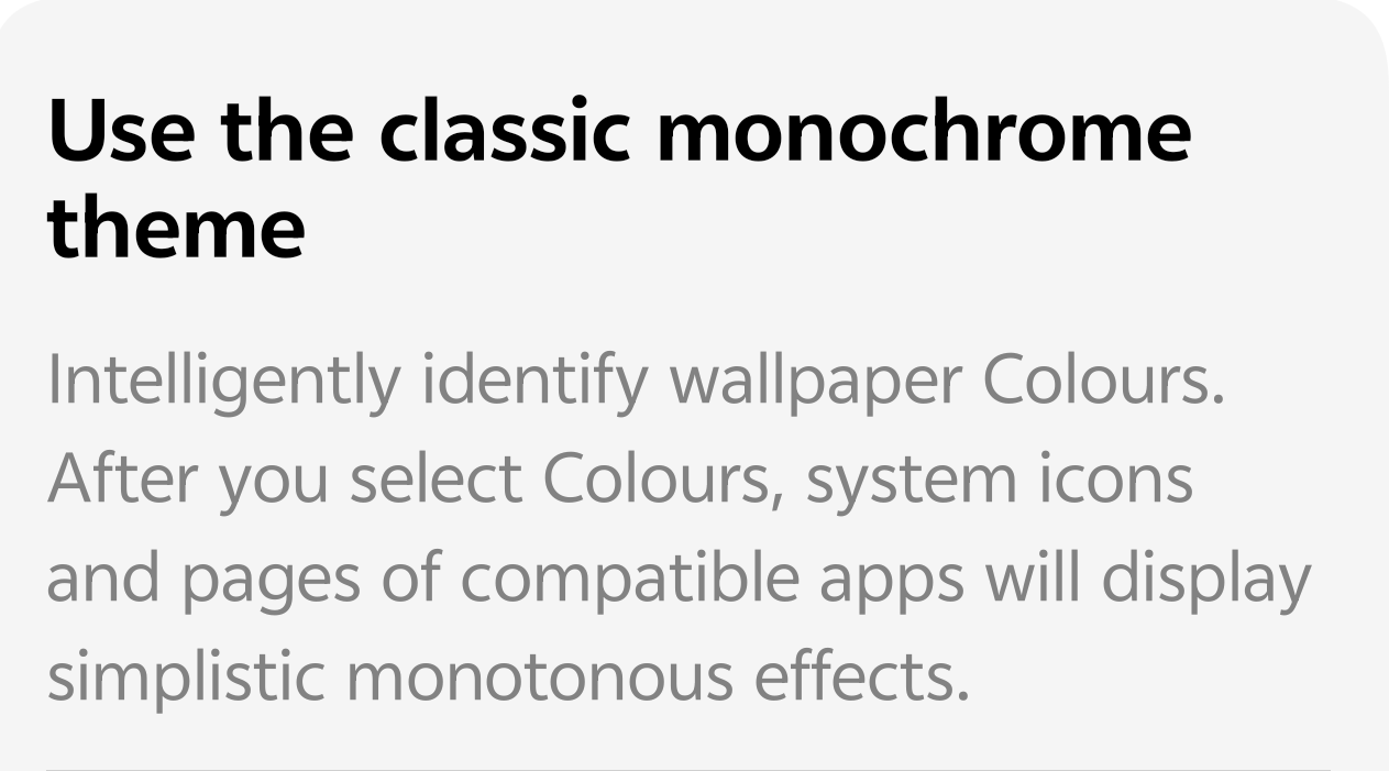This isn't just a basic black-and-white filter! The Classic Monochrome Theme intelligently identifies the colors in your chosen wallpaper and then applies a simplistic, harmonious monotonous effect across compatible parts of your system.