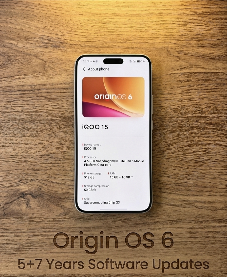 OriginOS 6 running on Android 16 is feature-rich with solid customization options. Some pre-loaded apps, but most are removable. Here's the key: 5 years of OS upgrades + 7 years of security updates. That puts it on par with Samsung and Google flagships – genuine long-term investment potential.