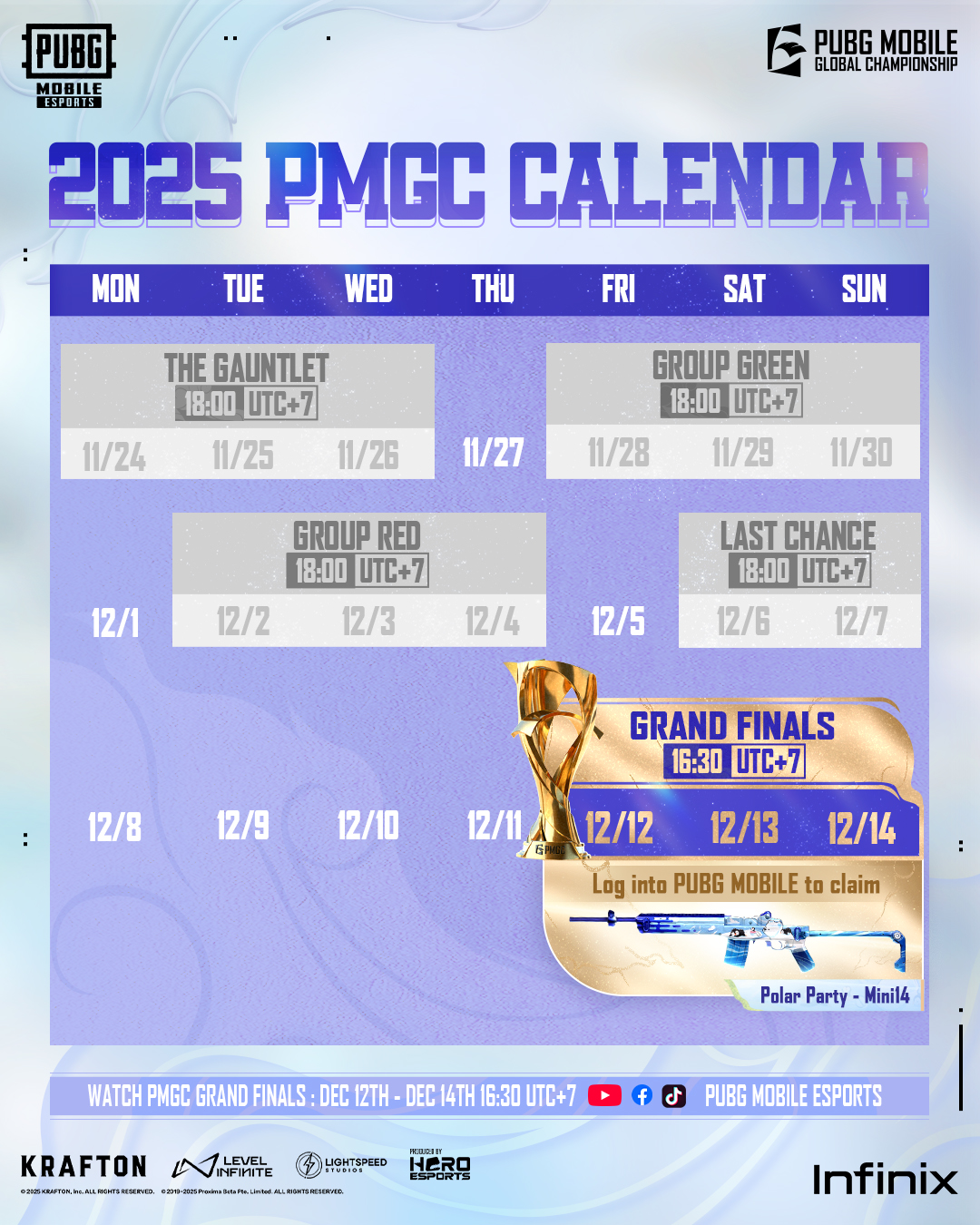 The Grand Finals of the PUBG Mobile Global Championship (PMGC) 2025 will be held from December 12 to 14, 2025