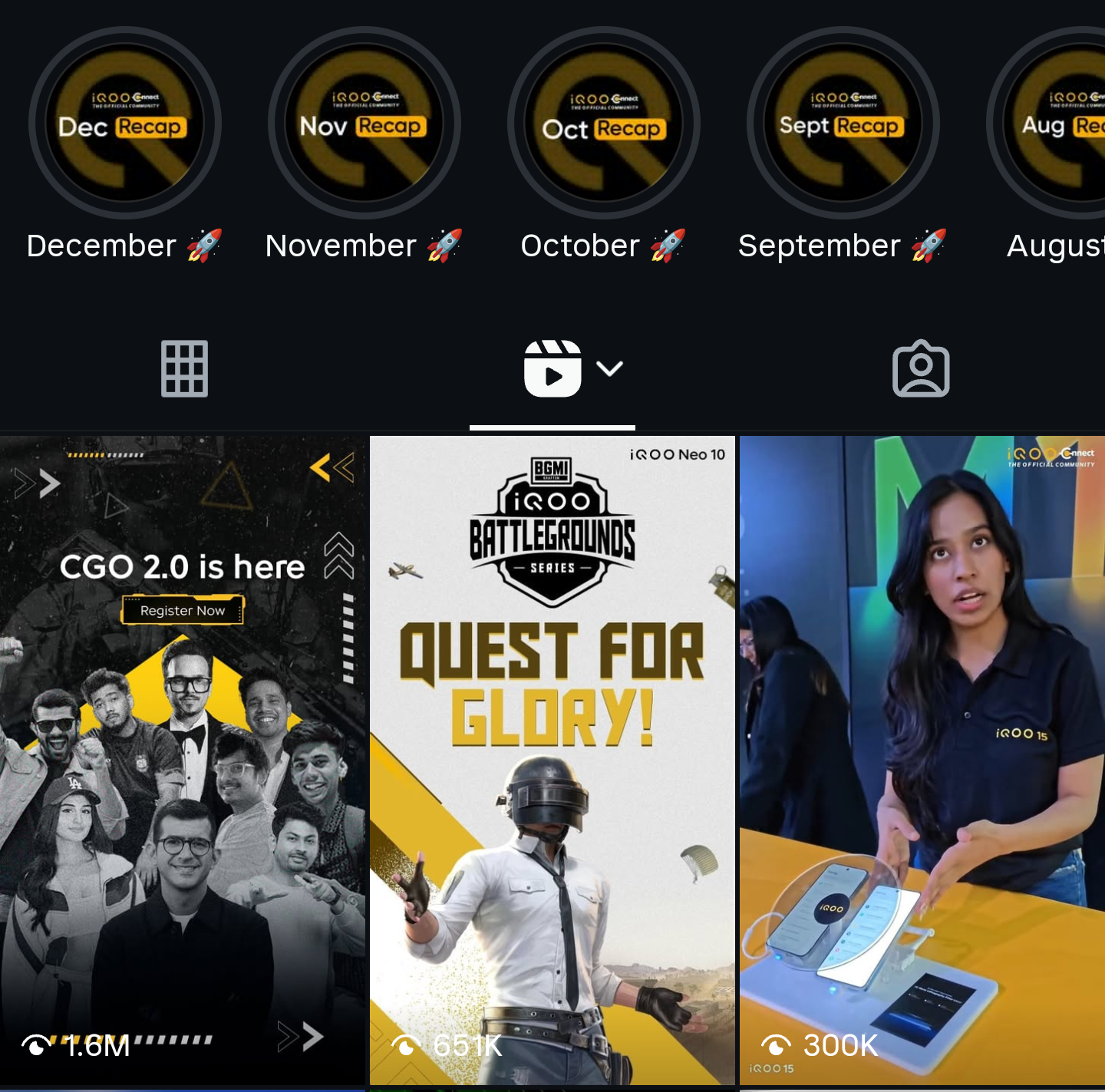 While the world was busy scrolling through year-end trends, I got curious about our own family. So, I hopped onto the iQOO Connect Instagram page. Thanks to Instagram's new sorting feature, I could finally filter the reels by Most Viewed - and honestly, it perfectly reflects our year in review.