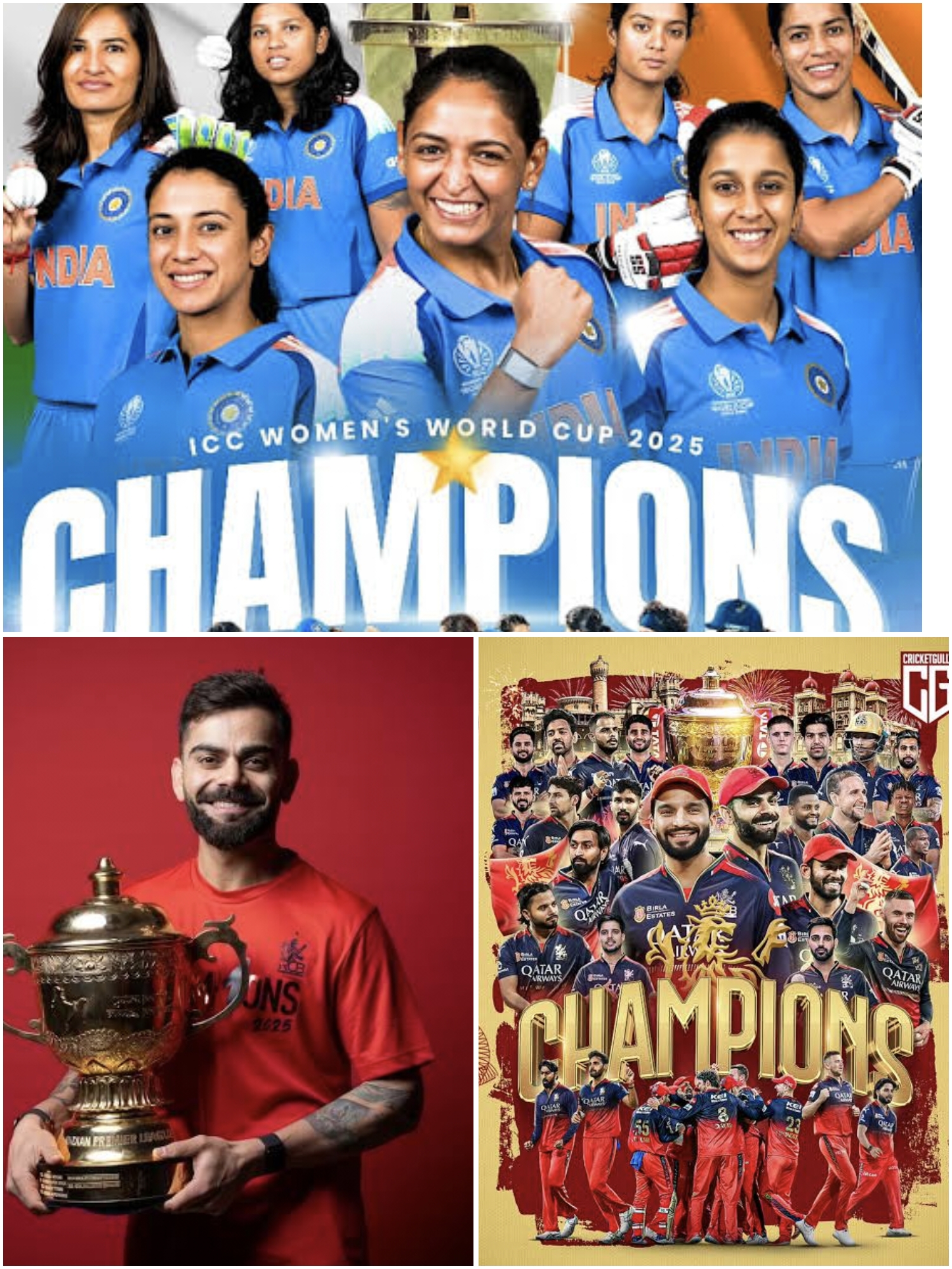 Finally, the chant came true! RCB lifting the trophy and "Ee Sala Cup Namdu" becoming a reality was a core memory for so many of us. But it was bittersweet too—Virat Kohli retiring from Tests had us all emotional, while the Women's Team winning the World Cup ended the year on a high!