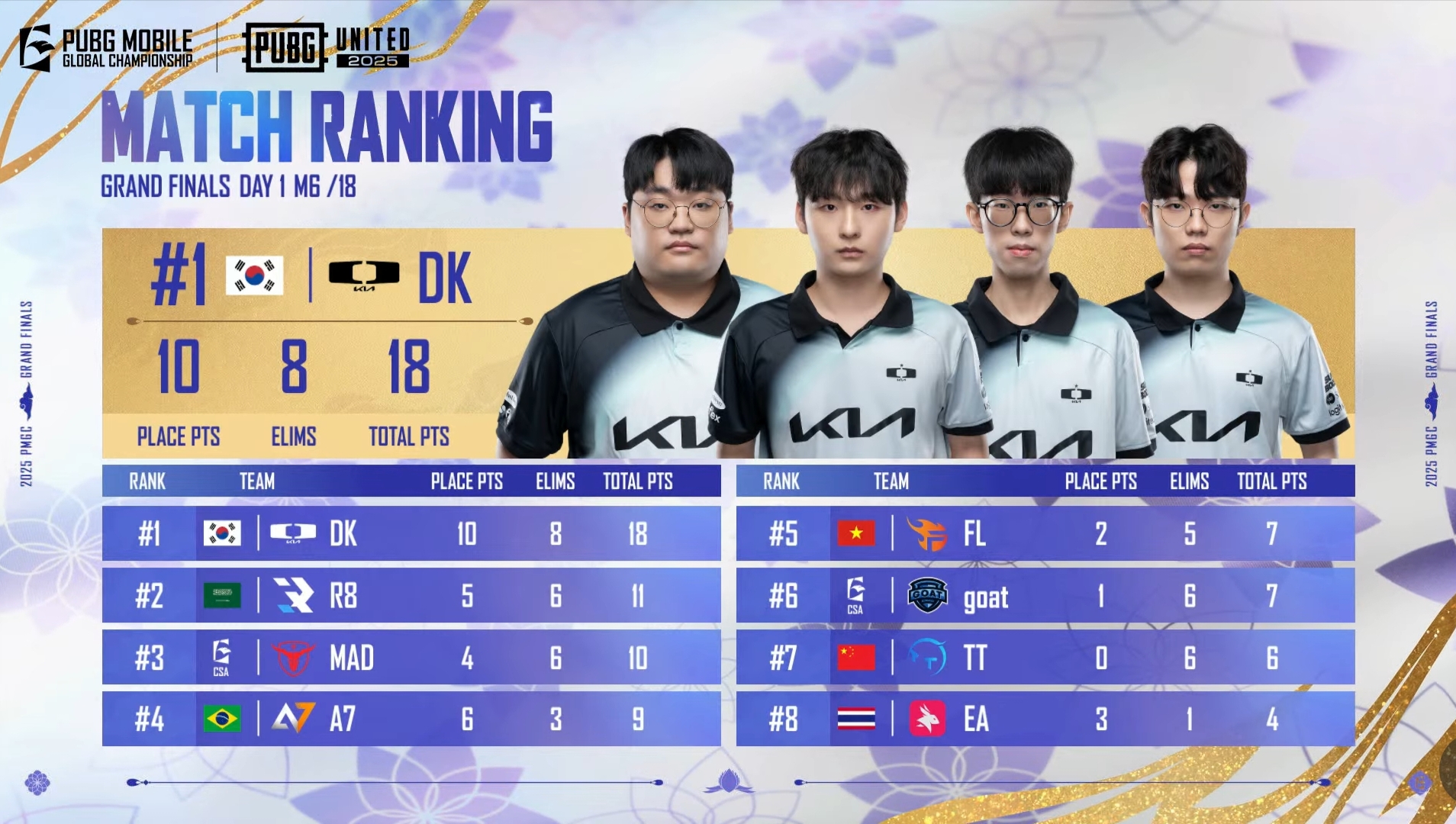 Dplus KIA bounced back after their previous five poor games and won an 18-point chicken Dinner. R8 from Saudi Arabia took 11 points. Madbulls managed 10 points. Alpha7 secured nine important points. Flash and GOAT got seven points each.