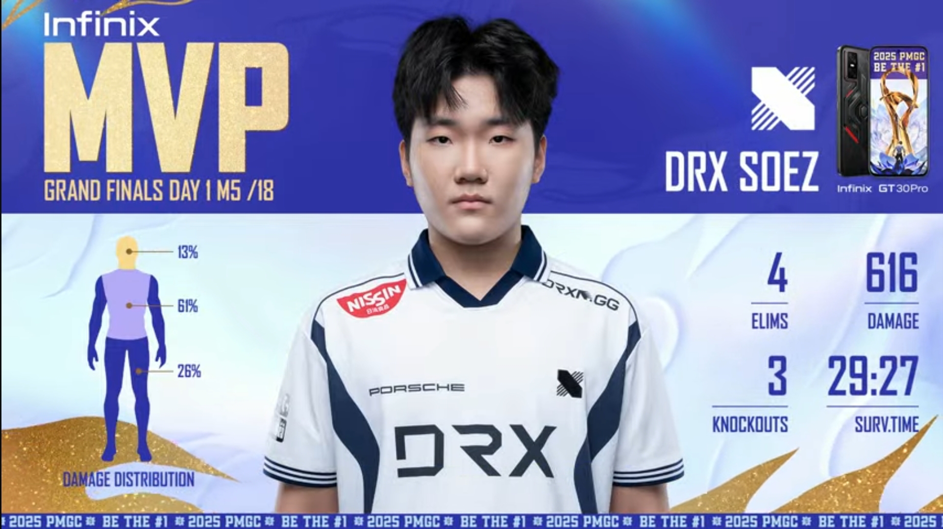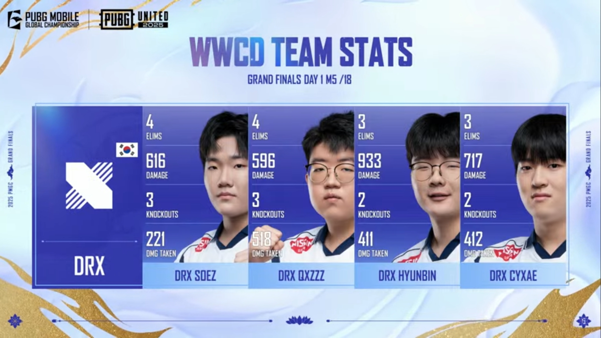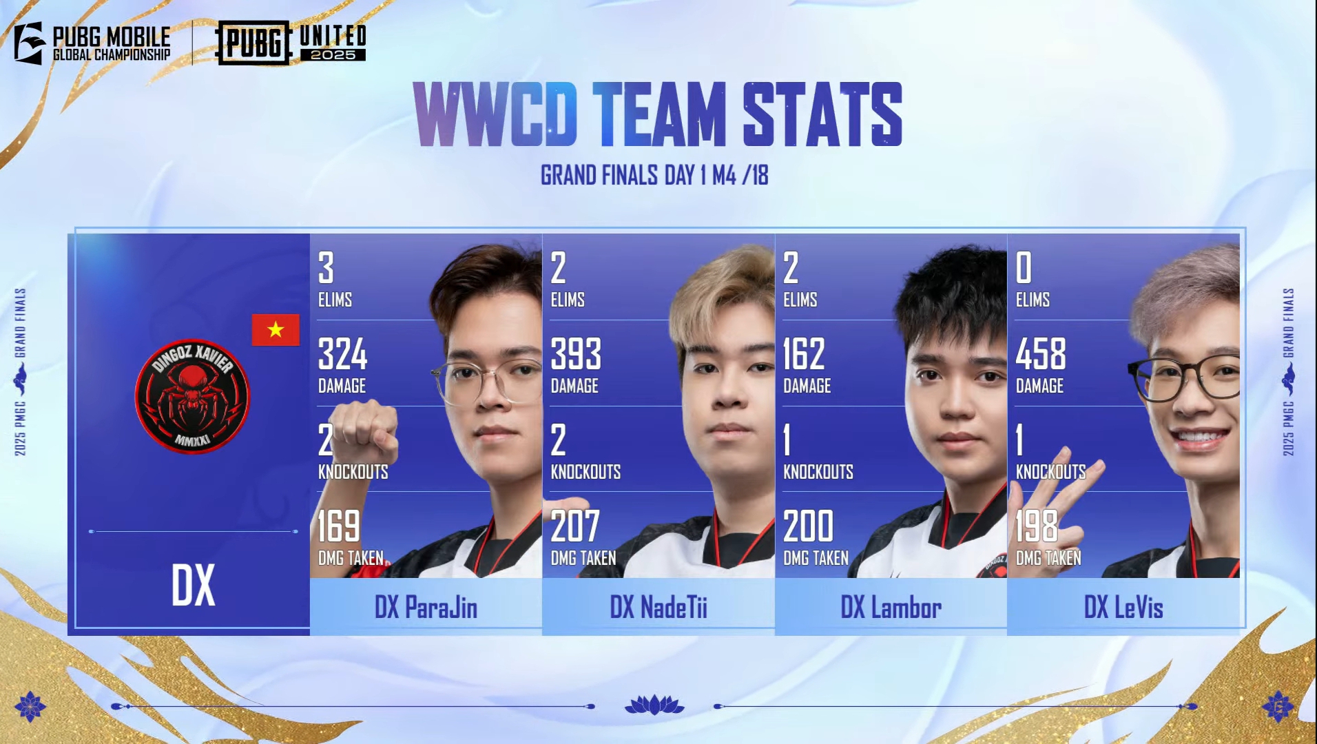 The opening day of the PUBG Mobile Global Championship (PMGC) 2025 Grand Finals was held on December 12. D’Xavier emerged as the top performer with 56 points and two Chicken Dinners. Alpha Gaming came second with 51 points and one Chicken Dinner, while DRX ensured third position with 50 points and one Chicken Dinner.