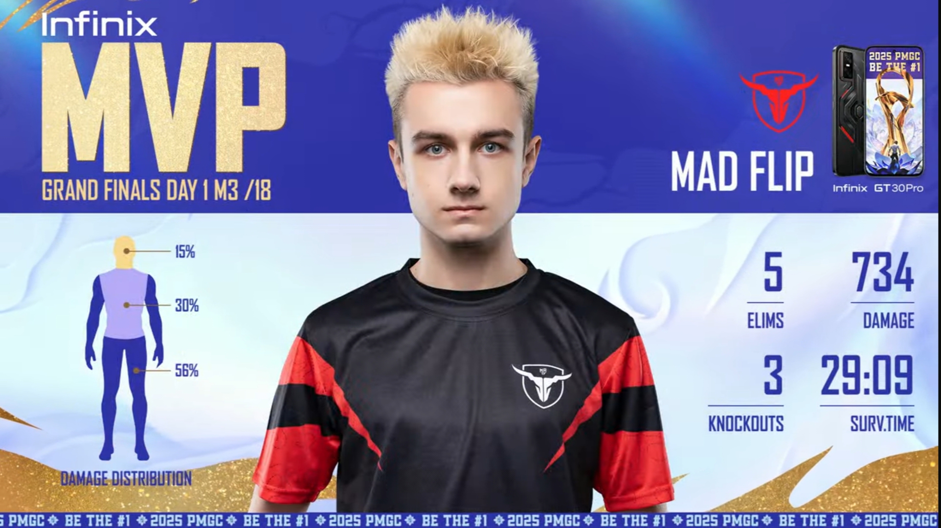 Madbulls registered a brilliant 23-point Chicken Dinner in the third encounter of the PMGC Finals. Vampire and ULF achieved 13 and 10 points, respectively. Regnum Carya and Flash took nine and eight points, respectively.