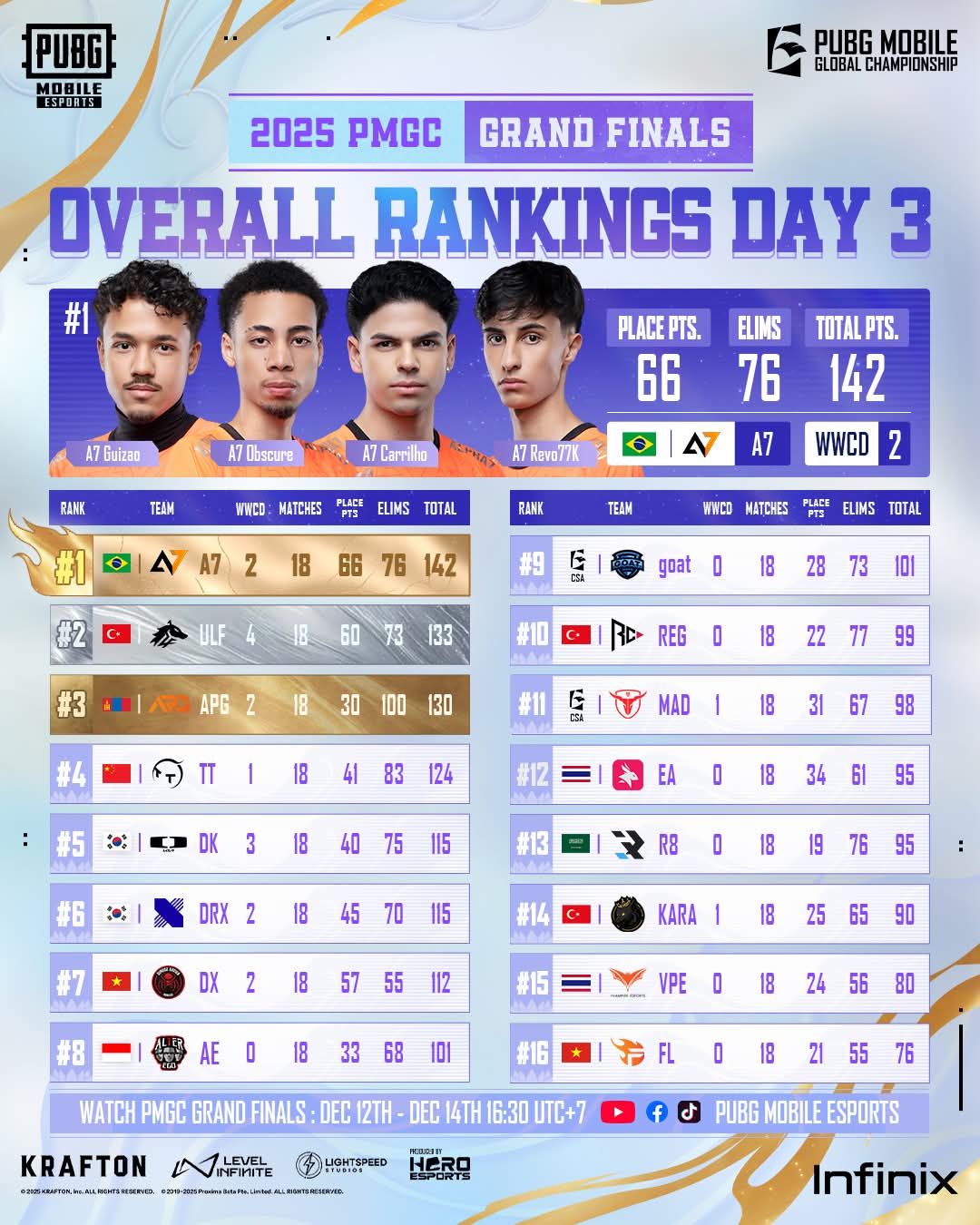 The PUBG Mobile Global Championship (PMGC) 2025 came to a close on December 14. Alpha7 Esports from Brazil became the undisputed champions of the prestigious event. The renowned squad demonstrated outstanding performances throughout the Grand Finals to lift the trophy, marking the first time a Brazilian club clinched the Global Championship title.