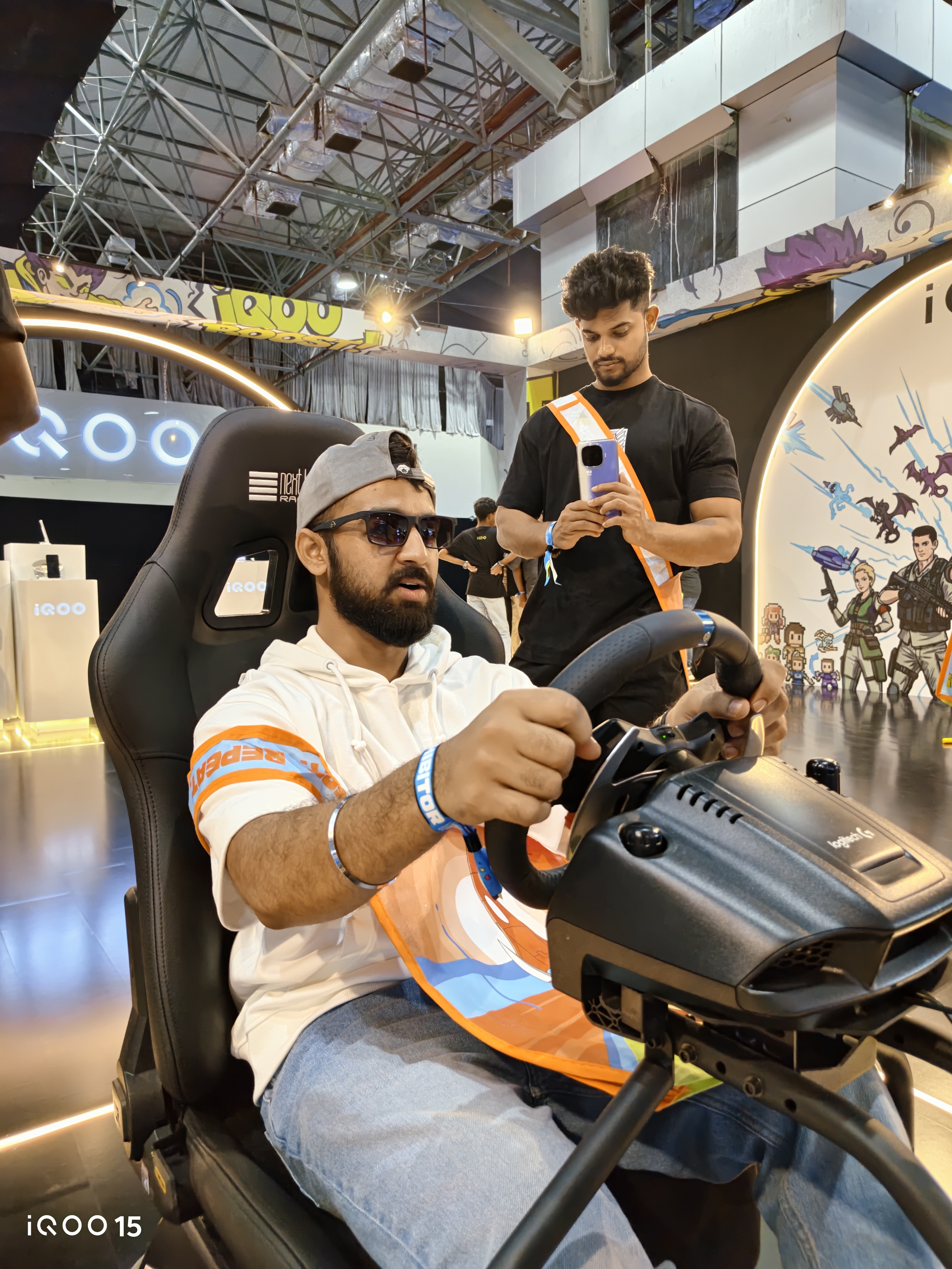 Adding to the excitement, iQOO introduced an F1 car racing experience at the booth. Participants could step into a racing-style setup and feel the thrill of high-speed control, sharp turns, and competitive gameplay.