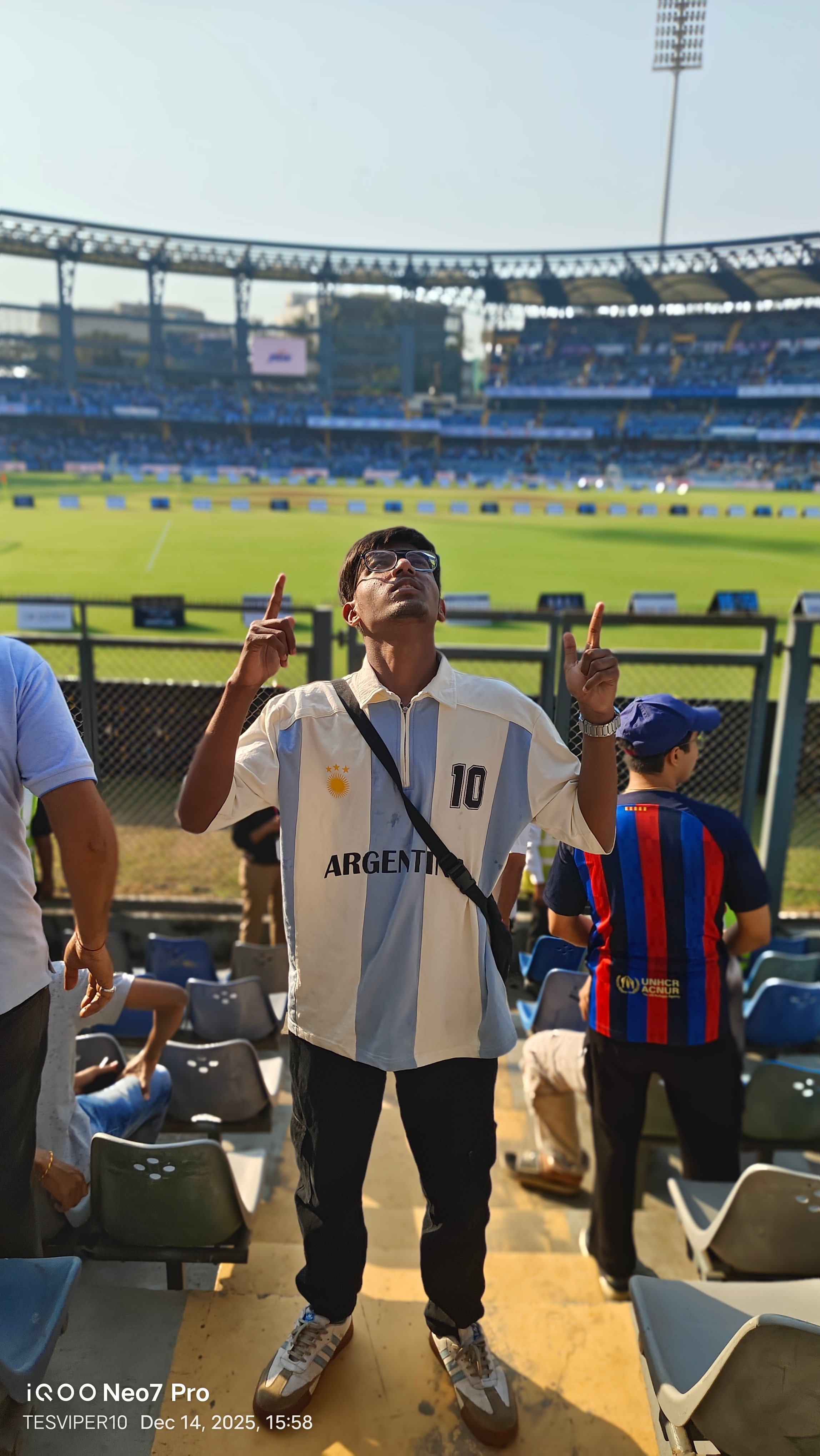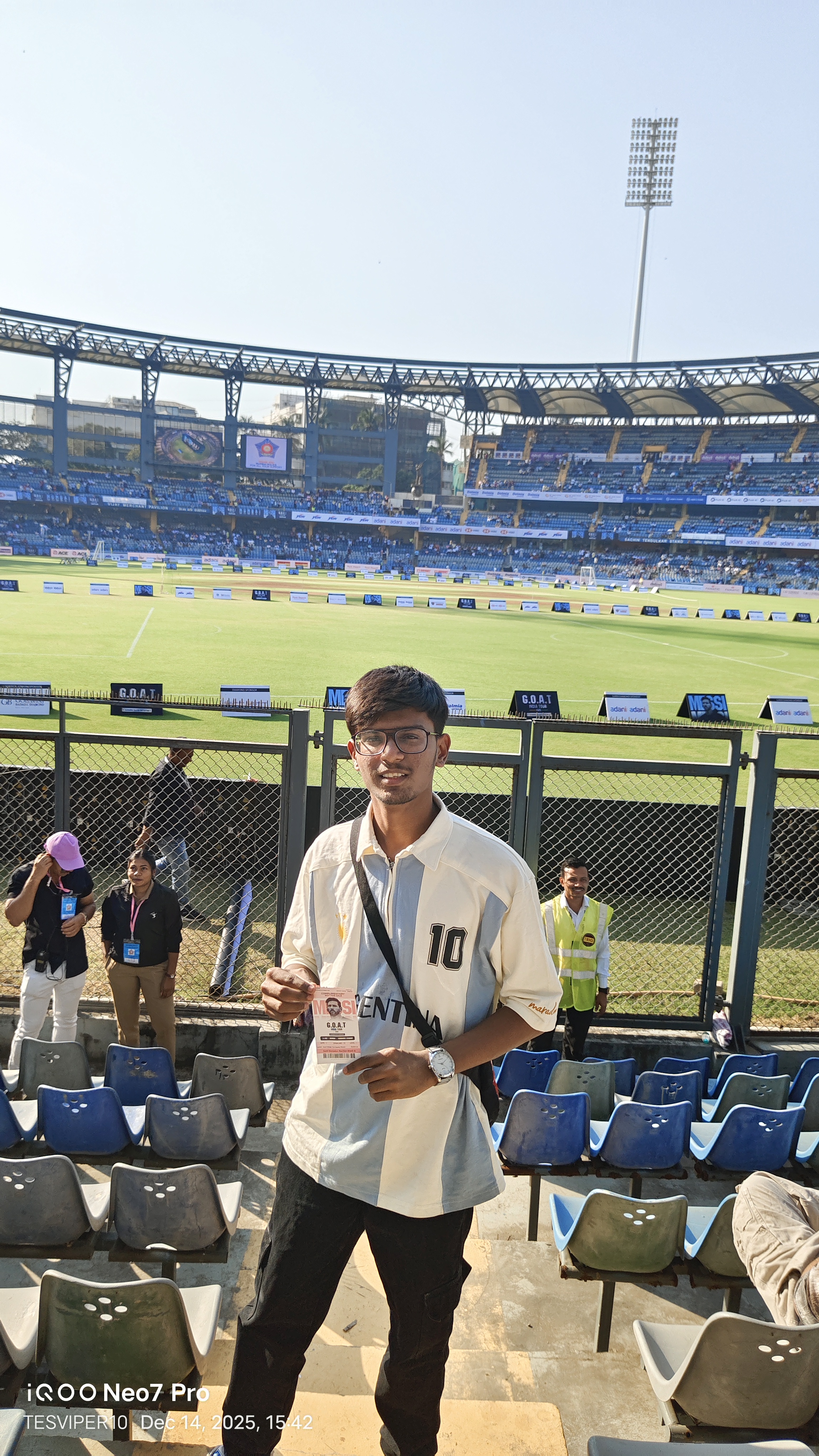 In December 2025, one of the biggest dreams of my life came true when I finally saw my idol Lionel Messi live in Mumbai. Witnessing him in person at Wankhede Stadium felt unreal and overwhelming, something I had imagined for years but never thought would actually happen.The moment Messi stepped onto the ground, the entire stadium erupted with emotions, chants, and goosebumps. Seeing the legend with my own eyes his presence, aura, and calm greatnessmade me realize why he means so much to millions of fans around the world. Every second felt magical, and my heart was filled with pure joy and disbelief.
