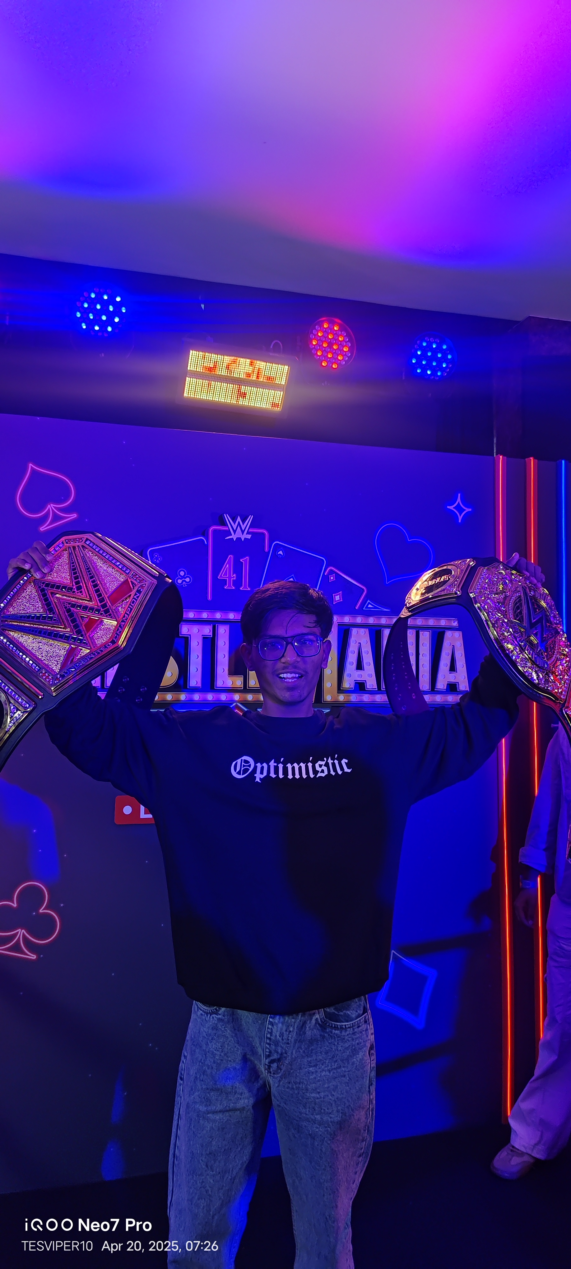 In May 2025, I got a special opportunity to attend the WrestleMania 41 Watch Party, hosted by WWE India exclusively for die-hard WWE fans. Being part of an official WWE-hosted experience itself felt unreal and made the moment even more special.Watching WrestleMania live on the big screen, surrounded by passionate fans, created an electrifying atmosphere. The cheers, reactions, and shared excitement made it feel just like being inside a stadium. Every match moment felt intense, emotional, and unforgettable for a true WWE fan.The highlight of the night was getting the chance to lift