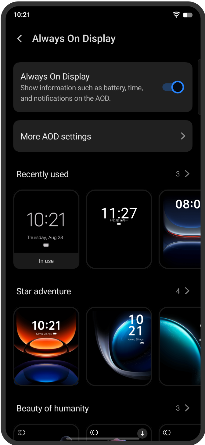 * High-Impact Previews: No more guessing how a theme will look. The new settings menu features larger, clearer preview images that give you a "real-feel" of the AOD before you apply it.