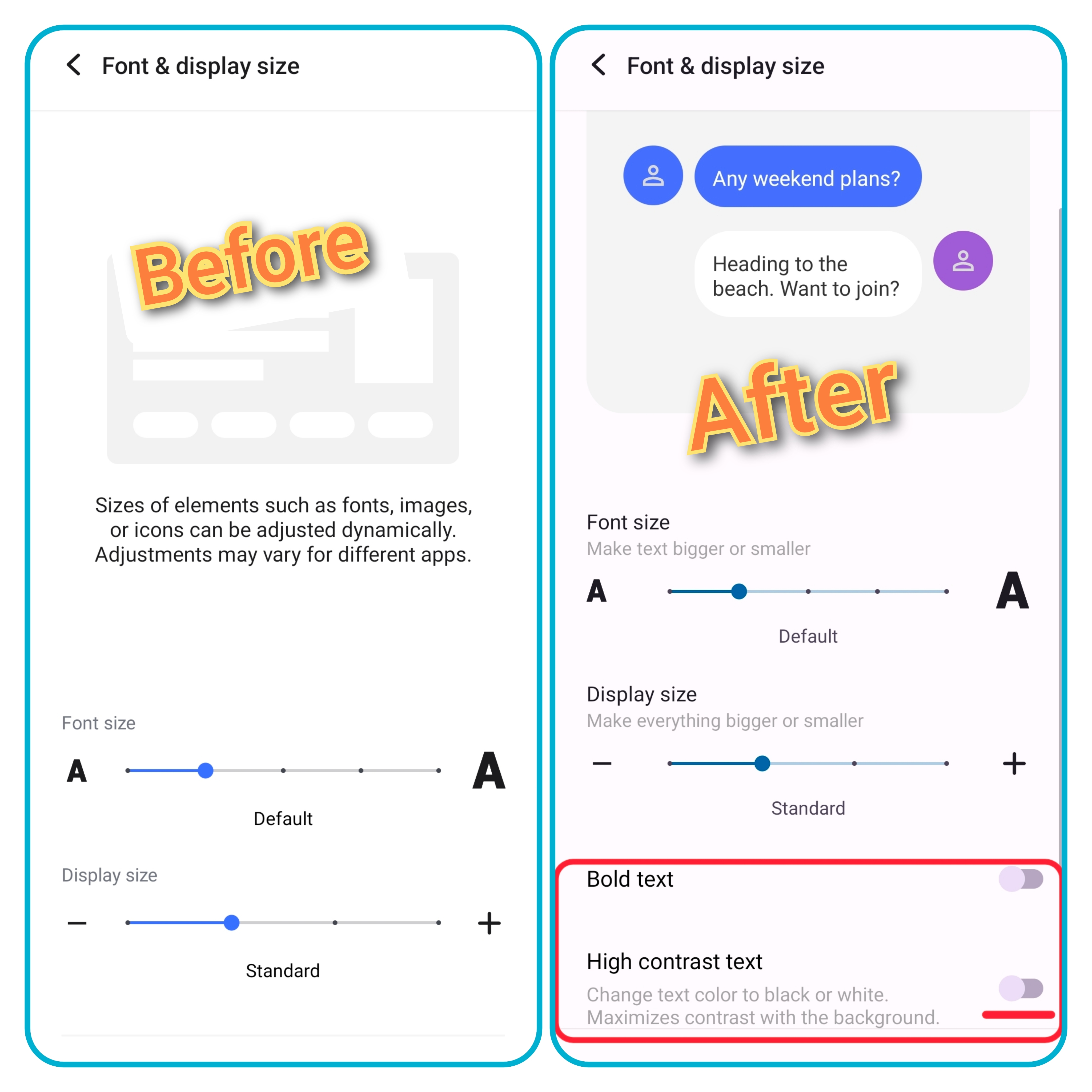 Two extra options added in the " Font & Display Size " Now you can make whole UI texts in " Bold & " High Contrast text "